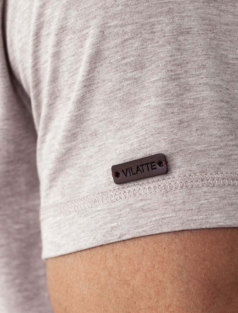 Однотонная футболка выполнена в минималистичном стиле, дополнена аккуратной вышивкой на груди в виде буквы V в тон изделия, а так нашивкой на рукаве из эко-кожи с логотипом VILATTE. Подходит как классический вариант для работы в офисе под пиджак, так и для повседневной носки или занятий спортом. Мягкая ткань приятна к телу, не вызывает дискомфорта и идеально подходит для дома или летних прогулок благодаря короткому рукаву.