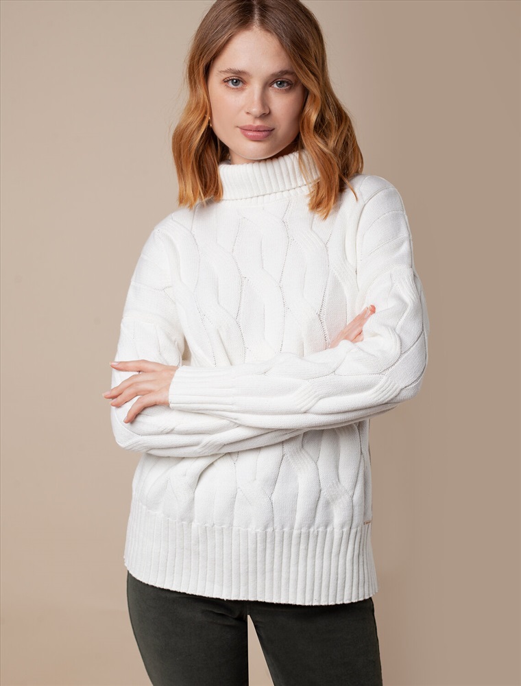 Уютный свитер с крупной вязки с узорами косы выполнен из мягкой хлопковой пряжи с акрилом. Модель абсолютно не колется и очень комфортная в носке даже на голое тело. Отлично согревает при этом не перегревая. Хорошо сочетается с брюками из эко-кожи и джинсами на флике, вельветом.