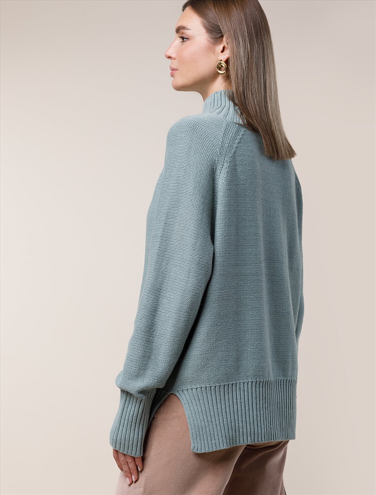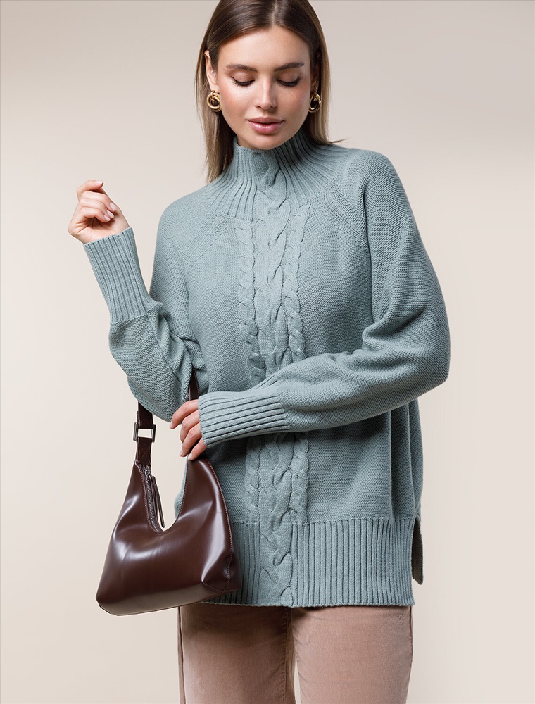 Свитер выполнен из мягкой хлопковой пряжи фактурной вязки с добавлением акрила. Модель связана изнаночной петлей, в сочетании с которой узор косы и высокие рибаны поддерживают ирландский стиль, который всегда в тренде. Комфортный ворот стойка хорошо защищает от ветра. Боковые разрезы поддерживают расслабленный свободный силуэт. Изделие сочетается с любым низом и не требует дополнительных аксессуаров.