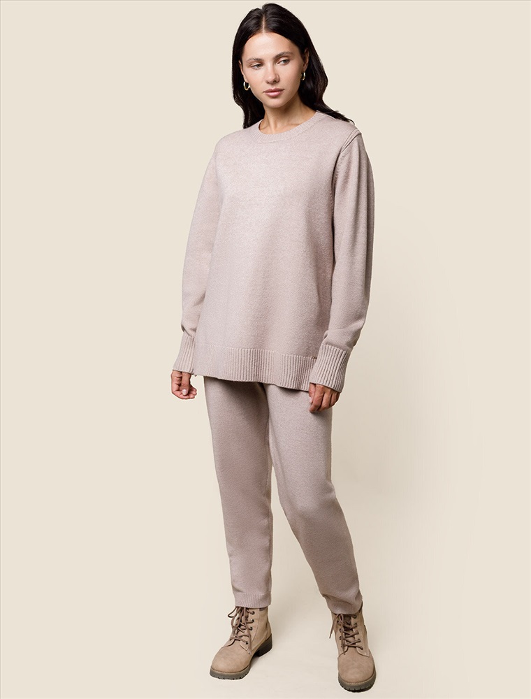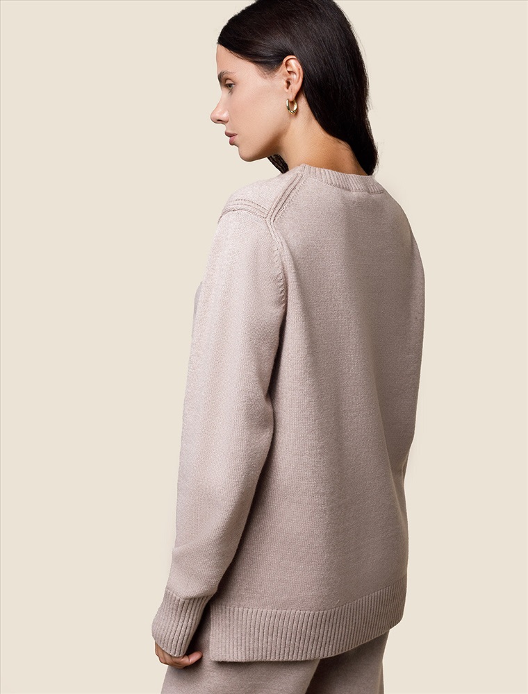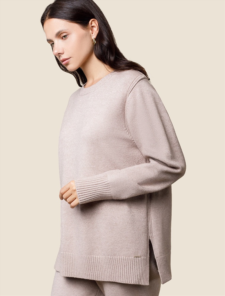 Джемпер с круглым воротом выполнен из мягкой меланжевой пряжи с кашемиром. Лаконичная модель свободного силуэта дополнена боковыми разрезами. Мягкая пряжа очень приятная к телу, поддержит комфорт на протяжении всего дня. Сочетается в костюме с брюками D38.013, D38.012 и юбкой D36.016