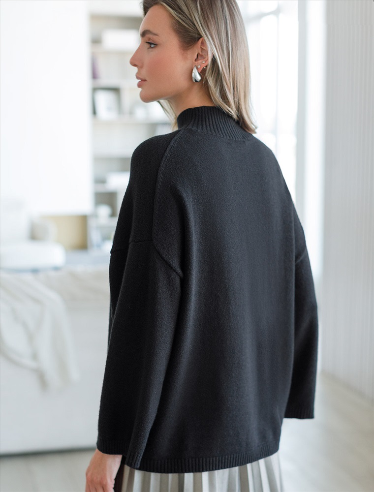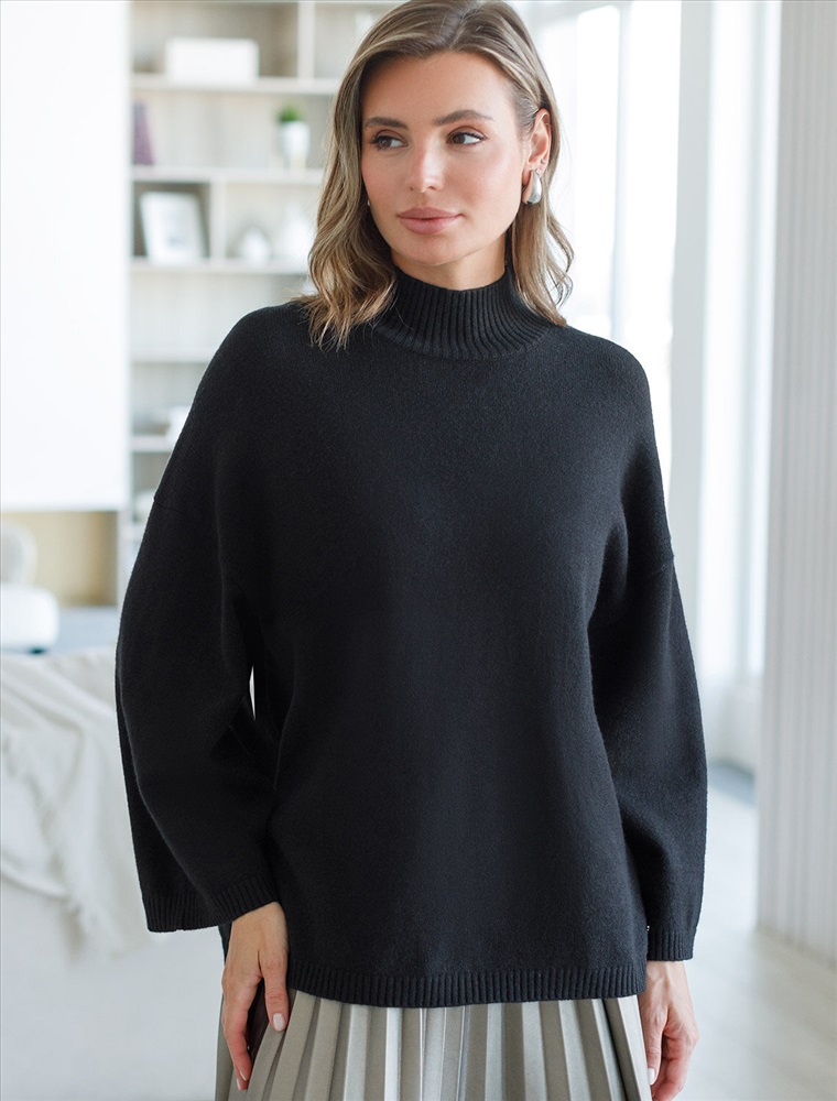 Джемпер выполнен из мягкой пряжи с кашемиром. Фишкой изделия являются свободные рукава на одном уровне с низом, это выгодно подчёркивает силуэт визуально вытягивая его. Мягкая пряжа очень приятная к телу, поддержит комфорт на протяжении всего дня, при этом не перегревая. Сочетается в костюме с брюками D38.013, D38.012 и юбкой D36.016