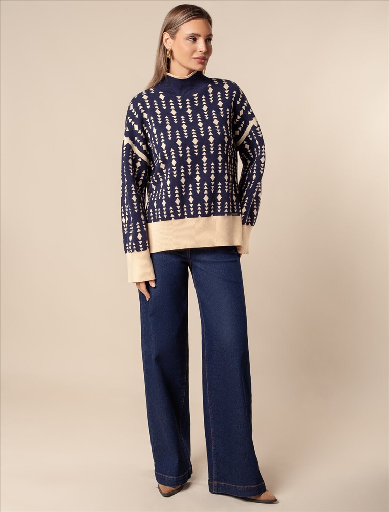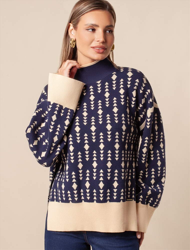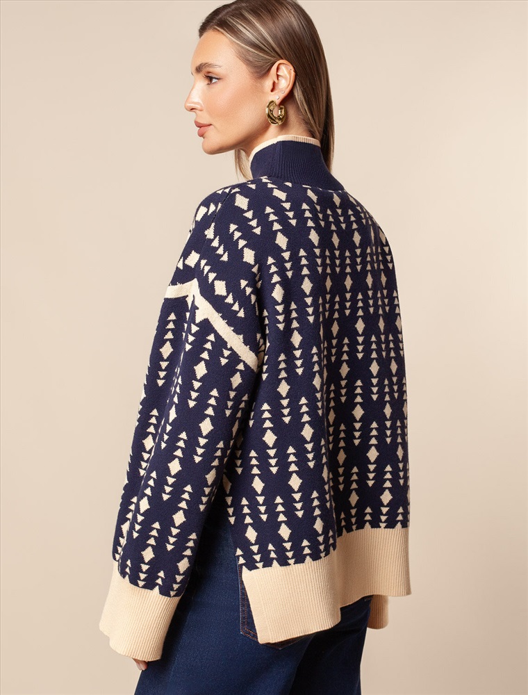 Свитер жаккардовой вязки выполнен из нежной пряжи на основе вискозы с добавлением кашемира. Свободная модель со спущенным плечом дополнена боковыми разрезами, что делает образ еще более расслабленным. Совет стилиста: такой джемпер может стать ключевым акцентом в сдержанном комплекте. Выбирайте однотонные низы в тон широкой рибаны или на контрасте.