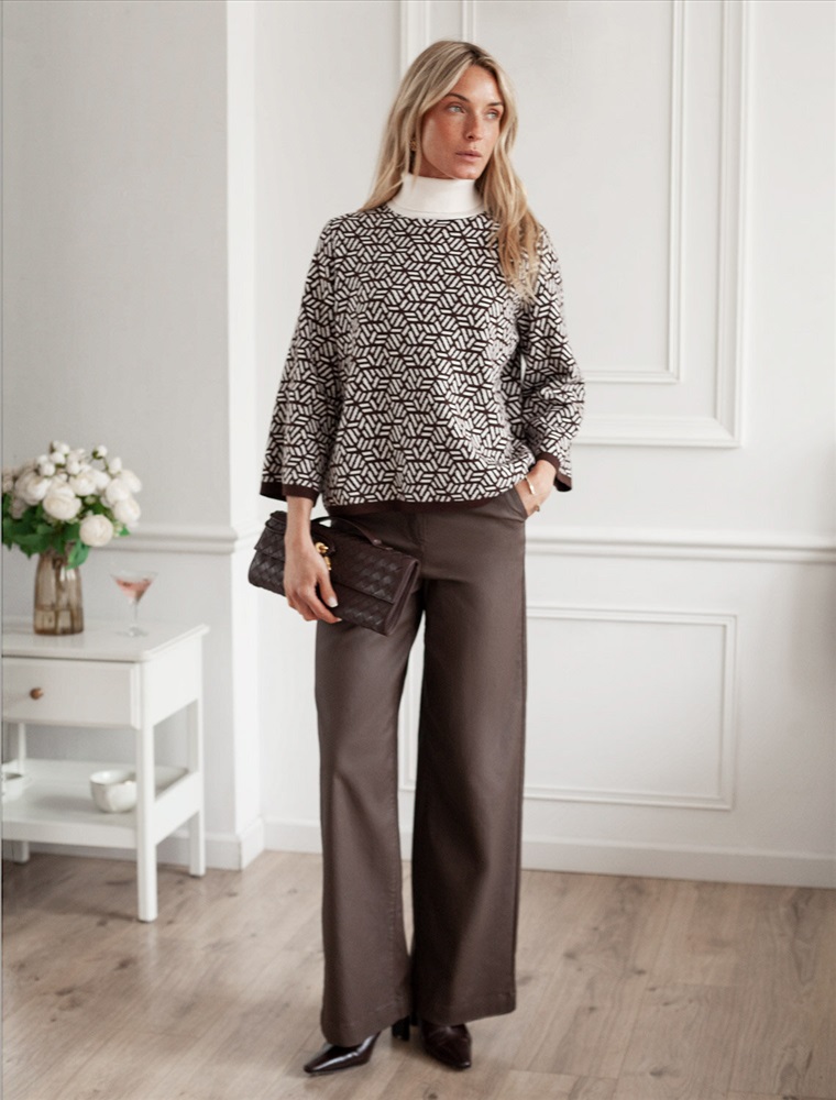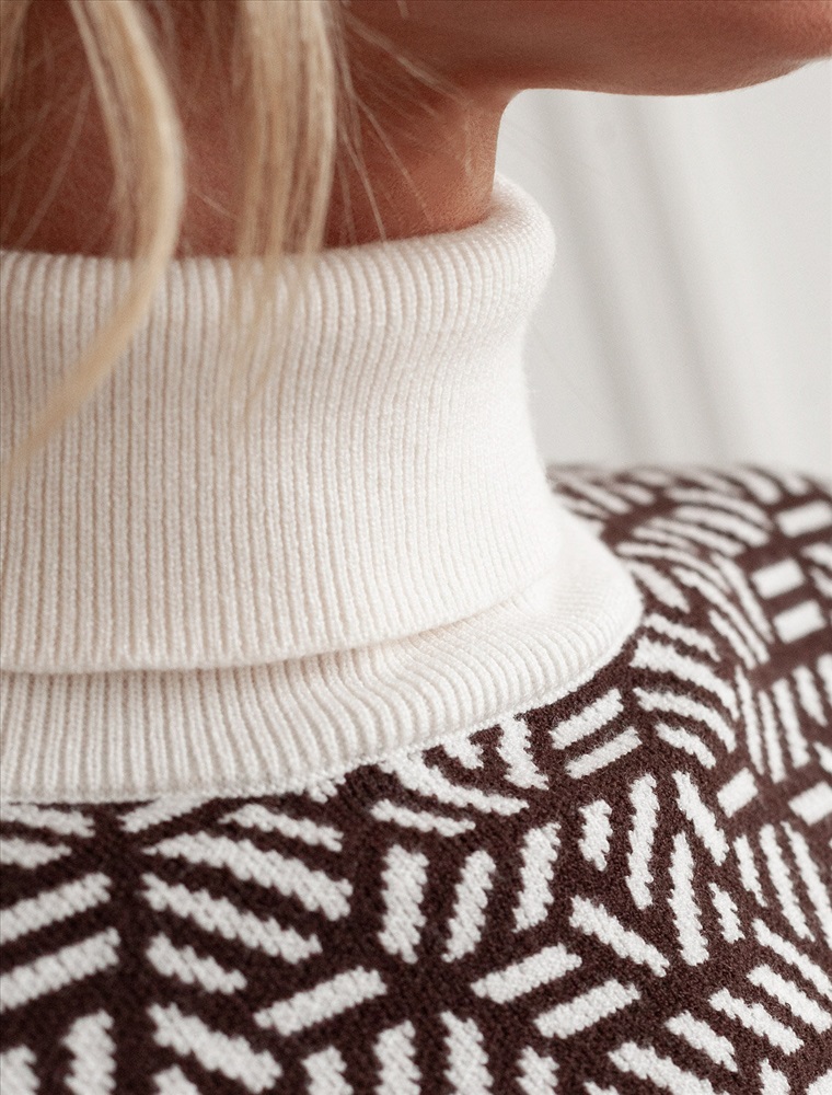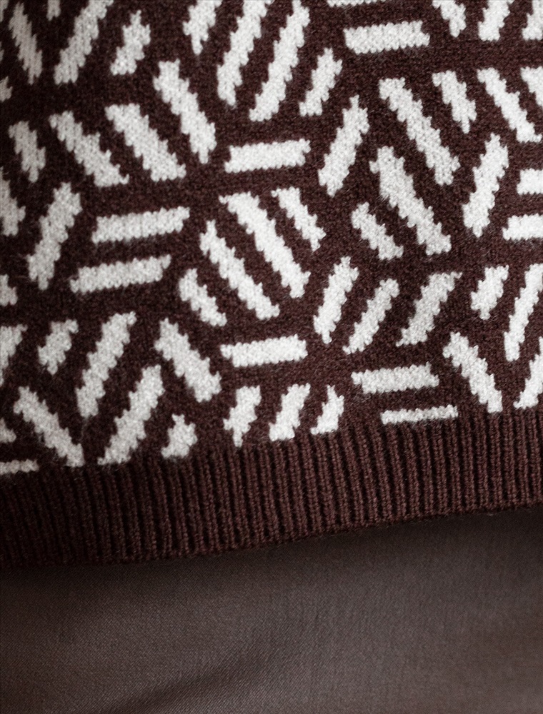 Свитер жаккардовой вязки выполнен из нежной пряжи на основе вискозы с добавлением кашемира. Модель свободного силуэта с укороченным рукавом подходит для любой фигуры. Жаккардовый узор выглядит дорого и роскошно, делая любой образ респектабельным. Нежная пряжа комфортно ощущается на теле, сохраняя оптимальное тепло при этом не перегревая