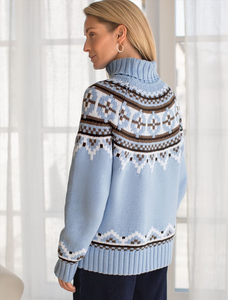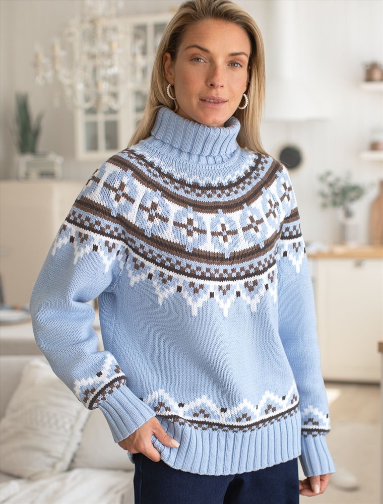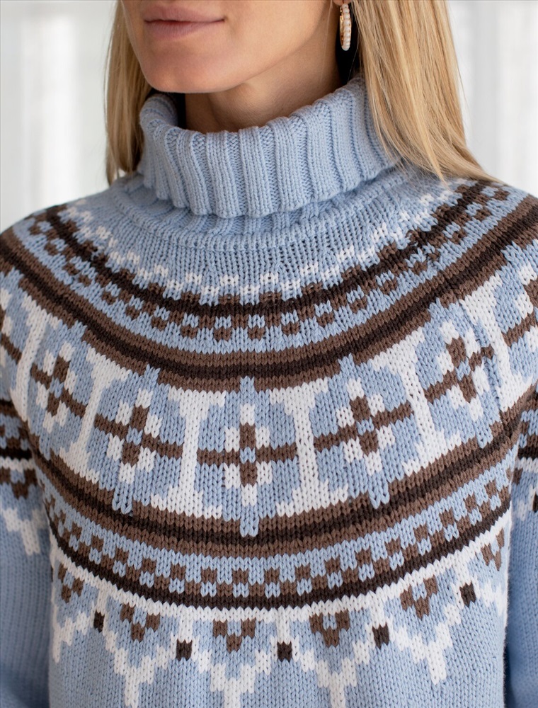 Свитер фактурной вязки выполнен из хлопковой пряжи с добавлением акрила. Уютная модель в скандинавском стиле внесет эстетику зимнего загородного отдыха в любой гардероб. Мягкая пряжа очень приятная к телу хорошо поддерживает тепло при этом не перегревая. Отлично держит форму даже после множества стирок. Свободный силуэт позволяет носить под низ футболки, лонгсливы и топы. Изделие дополнено металлическим логотипом бренда.
