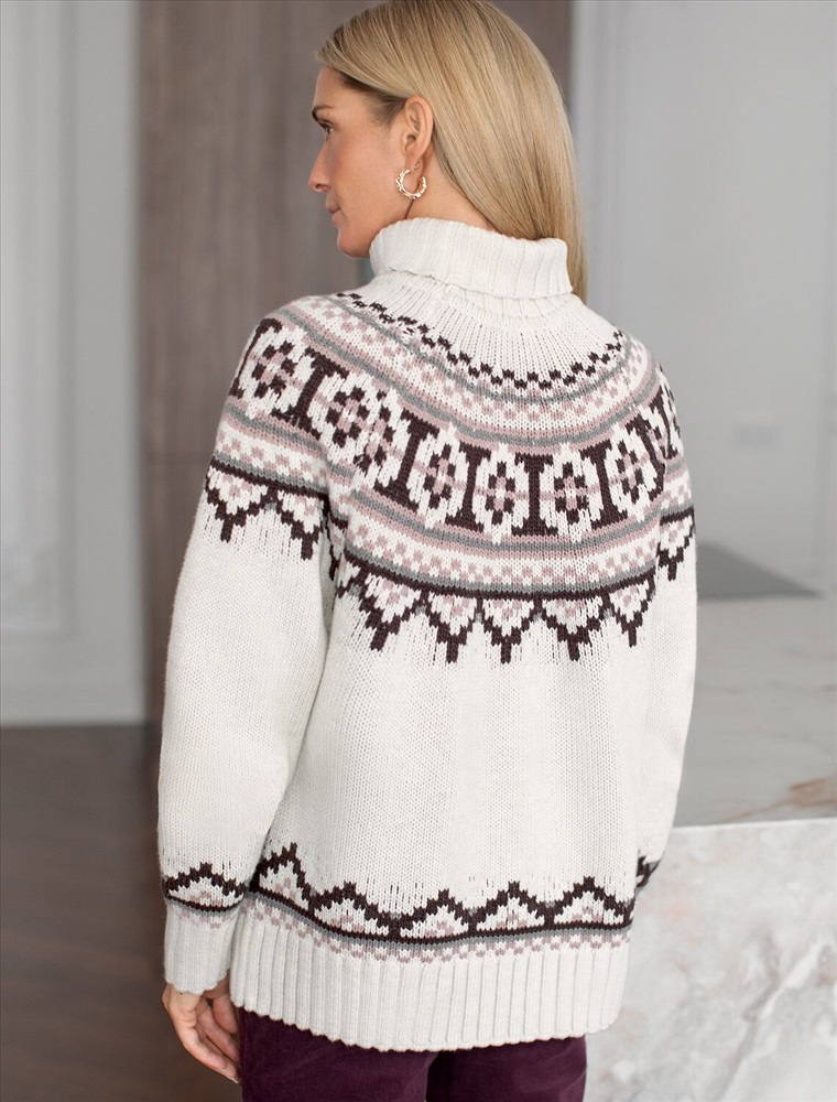 Свитер фактурной вязки выполнен из хлопковой пряжи с добавлением акрила. Уютная модель в скандинавском стиле внесет эстетику зимнего загородного отдыха в любой гардероб. Мягкая пряжа очень приятная к телу хорошо поддерживает тепло при этом не перегревая. Отлично держит форму даже после множества стирок. Свободный силуэт позволяет носить под низ футболки, лонгсливы и топы. Изделие дополнено металлическим логотипом бренда.