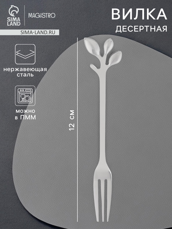 Габариты: 14 x 7 x 1 Страна: Китай В боксе: 300 шт Состав: Нержавеющая сталь Материалы: нержавеющая сталь Фасовка: по 1 шт Индивидуальная упаковка: Пакет Габариты товара: 12 см × 2 см × 0,5 см Сертификат: СТР Набор: Нет Цвет: Серебристый Длина, см: 12 В упаковке, шт.: 1 Материал ручки: Нержавеющая сталь Вид упаковки: Пакет Рисунок: Нет Материал: Нержавеющая сталь Складной: Нет Для детей до 3 лет: Нет Назначение: Десертные Можно мыть в посудомоечной машине: Да Цвет ручки: Серебристый Матовая поверхность: Нет Внешний вид: С фигурной ручкой Вилка десертная Magistro «Вудс» изготовлена из качественной нержавеющей стали. Такие столовые приборы прекрасно подойдут для ежедневного использования и для особых торжественных случаев. Прибор имеет необычный дизайн. Вилка стильно смотрятся на блюдце, отлично подойдёт для фото-композиций и для красивой подачи фруктов и десертов. Длина вилки: 12 см Ширина: 2 см Преимущества товара: