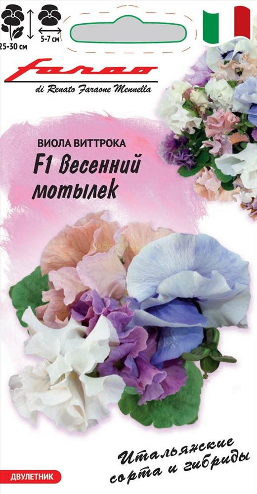 Удивительно-нежная виола с крупными (5-7 см в диаметре) махровыми цветками необычной формы, напоминающей душистый горошек, пастельных оттенков: от воздушно-белого до сказочно-фиолетового, щедро покрывают небольшие кустики высотой 25-30 см с ранней весны и до поздней осени. Растение влаголюбивое, холодостойкое, прекрасно растет на солнце и в полутени. Для получения растений, цветущих в год посева, семена высевают на рассаду в феврале-марте. Всходы появляются через 5-7 дней. В открытый грунт рассаду высаживают в конце апреля-начале мая на расстоянии 15-20 см. Хорошо переносят пересадку в цветущем состоянии. При посеве в открытый грунт в июне-июле, цветение наступает во второй год. Идеально подойдет для живописных композиций в саду, украшения балконов, оформления рабаток, клумб и бордюров.