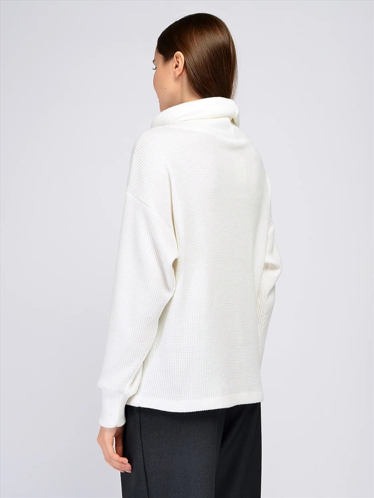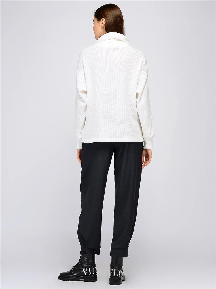 Джемпер с воротником хомутом. Невозможно представить осеннюю и зимнюю пору без уютного и комфортного свитера силуэта оверсайз с крупным воротником. Идеальный силуэт джемпера гармонично дополнит и офисный, и городской образы. Вам не захочется снимать эту вещь, поскольку она выполнена из приятного к телу материала и выглядит идеально. Вырез горловины круглый. Воротник хомут. Рукава длинные. Рукава втачные. Без застежки. Крой прямой. Рекомендована стирка при температуре не более 30С. Свободный джемпер с длинными рукавами носите навыпуск или заправляйте за пояс. Универсальный фасон одинаково удачно сочетается как с классическими вещами, так и с повседневными. Для придания образу торжественности наденьте на шею крупное украшение. Обувь выбирайте исходя из собственных предпочтений и мероприятия.
