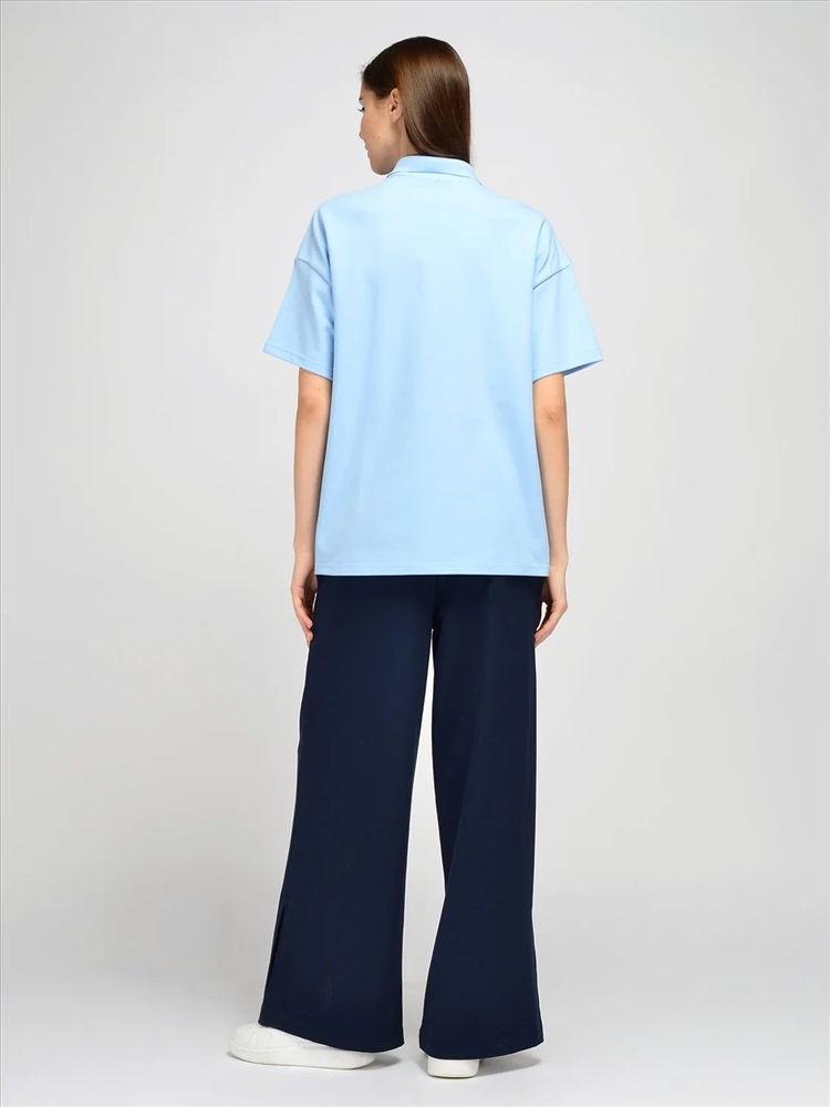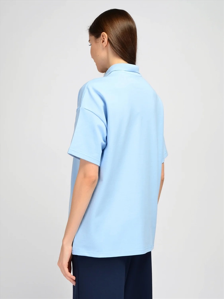 Классическая футболка поло теперь в фасоне оверсайз. Свободный крой и качественная хлопковая ткань пике обеспечат Вам комфорт в течение всего дня. Вы можете быть уверены, что рубашка поло прослужит Вам долгие годы, сохраняя свой цвет и форму. Футболка имеет классический отложной воротник, застегивается на 4 пуговицы. Спереди на полочке вышит фирменный логотип в тон изделия. Современный фасон предусматривает спущенную линию плеча. Широкая футболка оверсайз скроет возможные недостатки фигуры. Вы можете носить рубашку поло навыпуск или заправлять ее за пояс, подчеркивая талию. Футболка-поло оверсайз сочетается со спортивными брюками, юбками, джинсами, шортами. Создайте стильный образ на лето для прогулок, активного отдыха или для дома. Футболка оверсайз придется по вкусу подросткам, девушкам и женщинам, которые выбирают практичность и комфорт. Футболка поло свободного кроя станет идеальным дополнением летнего гардероба и впишется во многие повседневные образы.