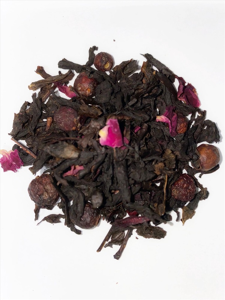 чай чёрный ,каркаде, ягоды вишни чёрной и красной, лепестки роз