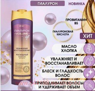 ПЕРВЫЙ ГИАЛУРОНОВЫЙ ШАМПУНЬ от ВИТЭКС с тройным ухаживающим комплексом для максимального результата в 3 направлениях. Шампунь увлажнение и восстановление "Роскошный шампунь для волос Гиалурон Volume Lift" – это невероятно эффективное средство, созданное для максимального ухода за вашими волосами. В его составе ультраконцентрированная гиалуроновая кислота, масло хлопка и провитамин В5, которые позволяют сохранить и восстановить здоровье ваших волос.