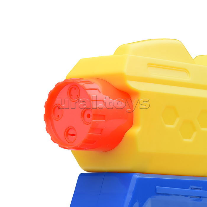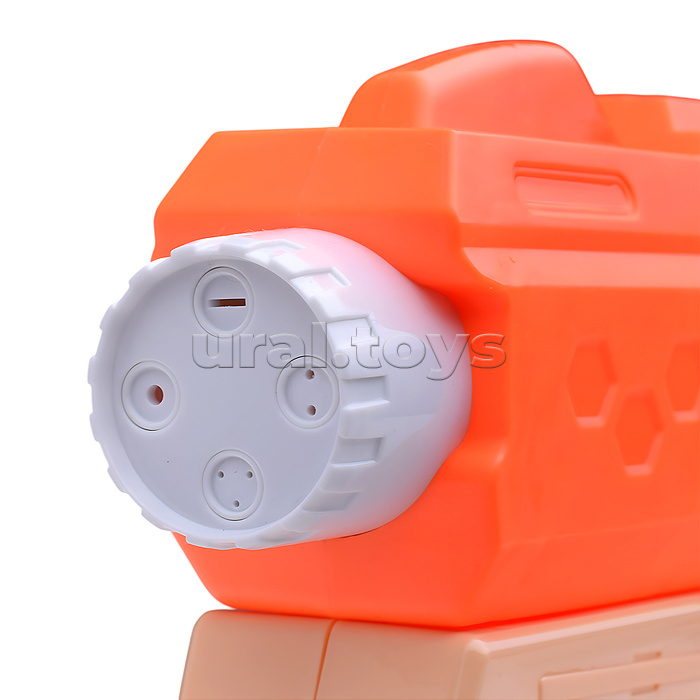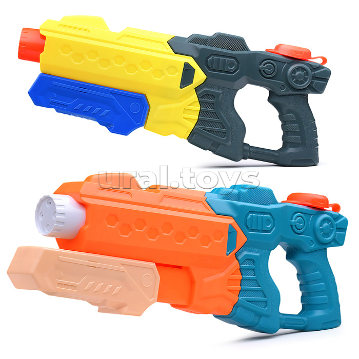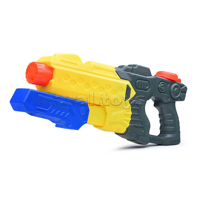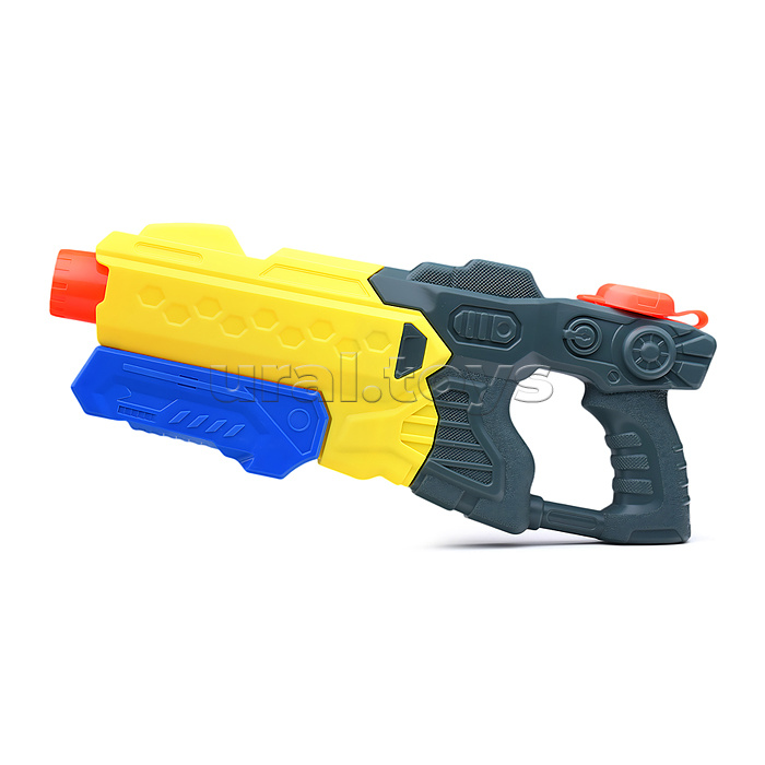 • Стреляет водой. • Отверстие с крышкой на корпусе для заливки воды. • Помповый механизм. • Размер оружия: 37х4.5х14 см. • Материал: пластик. • Соответствует требованиям безопасности продукции. • Для детей от 3-х лет.