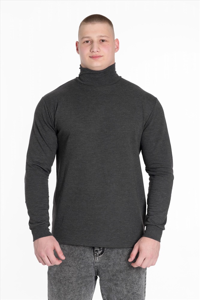 Водолазка мужская, однотонная (начёс 2-х нитка), свободного кроя, с длинным рукавом на манжете и высоким воротом.