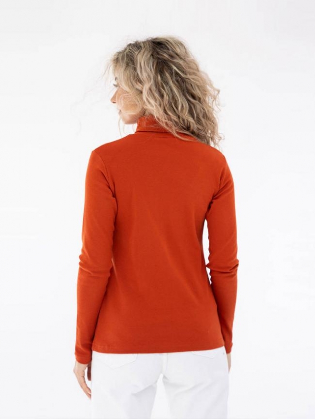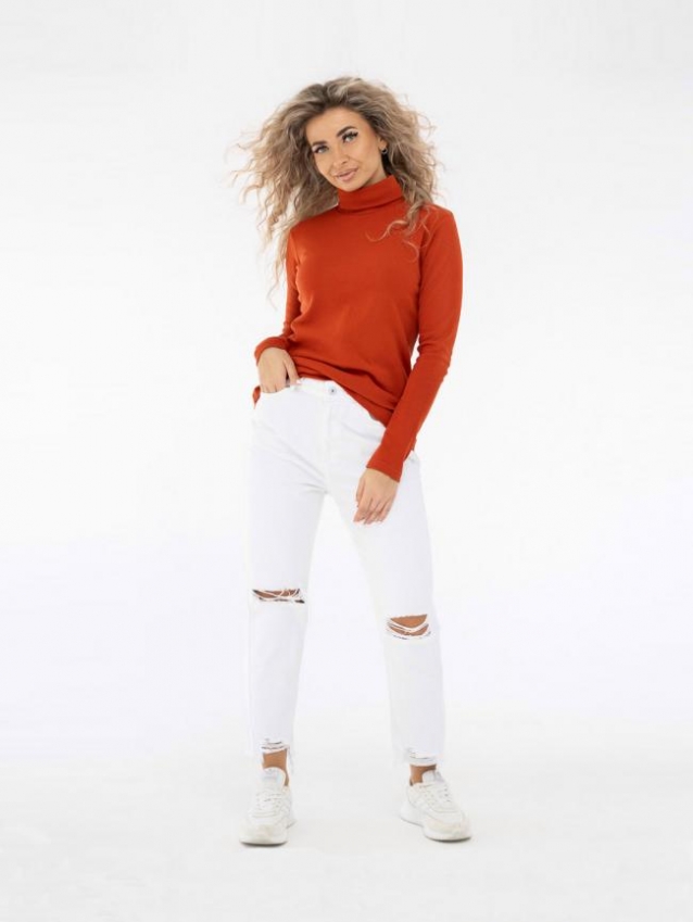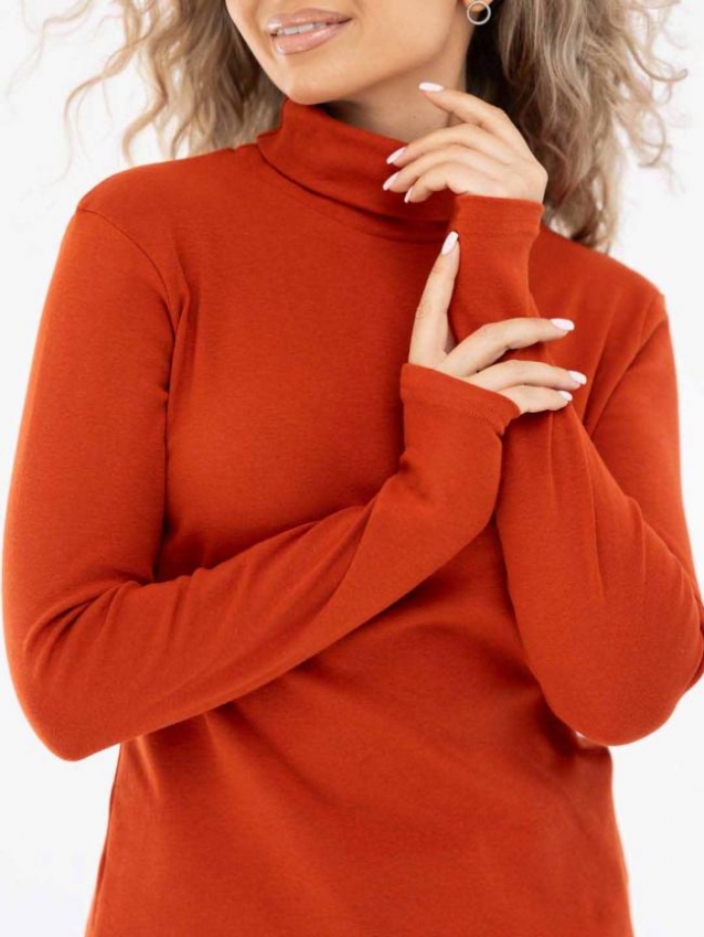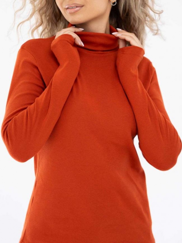 Водолазка женская из трикотажного полотна. С отрезной стойкой и втачными рукавами. Ворот водолазки отворачивается. Водолазка имеет одновременно черты футболки и свитера, что создает уникальное спортивно-деловое, стильное минималистическое сочетание.
