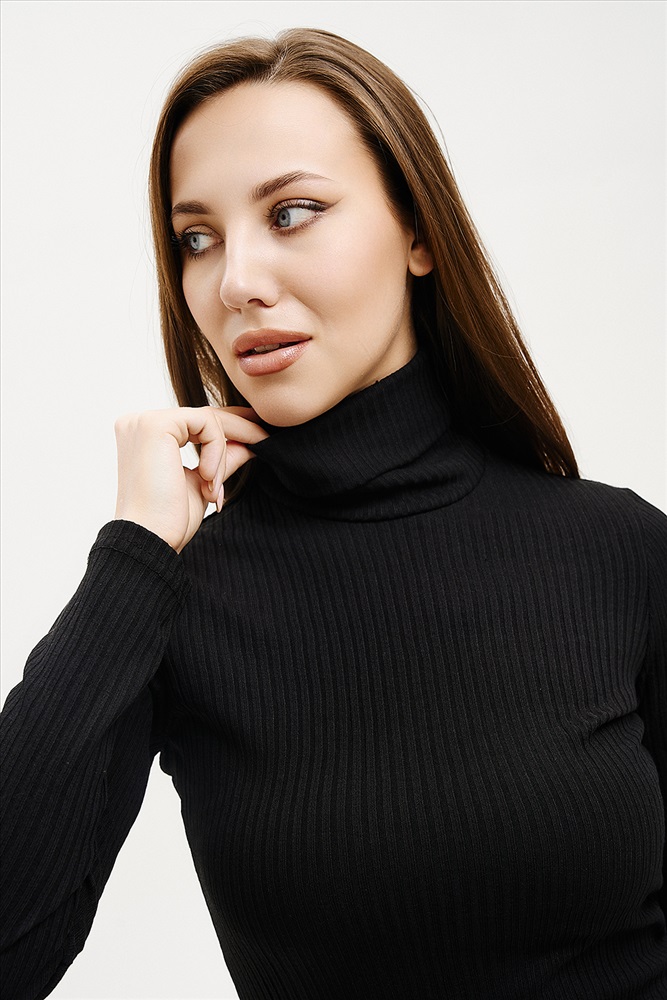 Водолазка женская, прилегающего силуэта. Представляет собой базовую вещь из тонкого трикотажа в рубчик. Высокий ворот-горловина 13 см. Джемпер подарит ощущение комфорта и уюта.