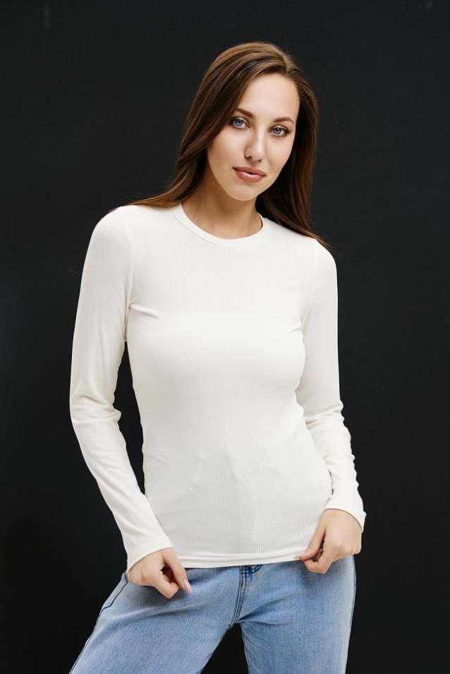 Водолазка женская, прилегающего силуэта. Представляет собой базовую вещь из тонкого трикотажа в рубчик с округлой горловиной.
