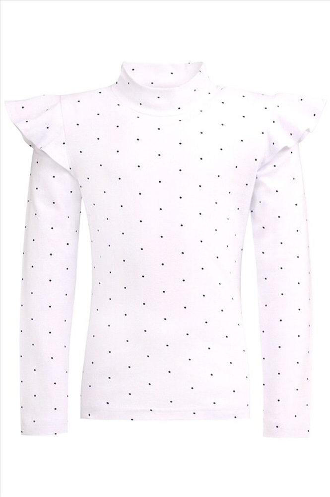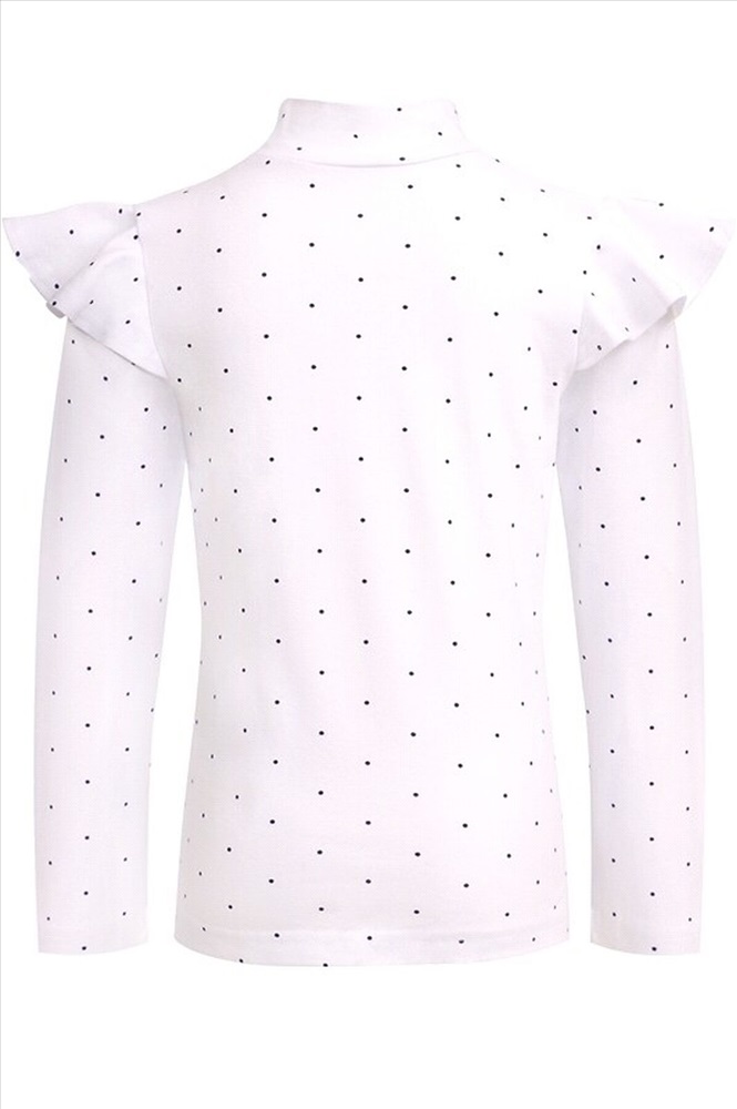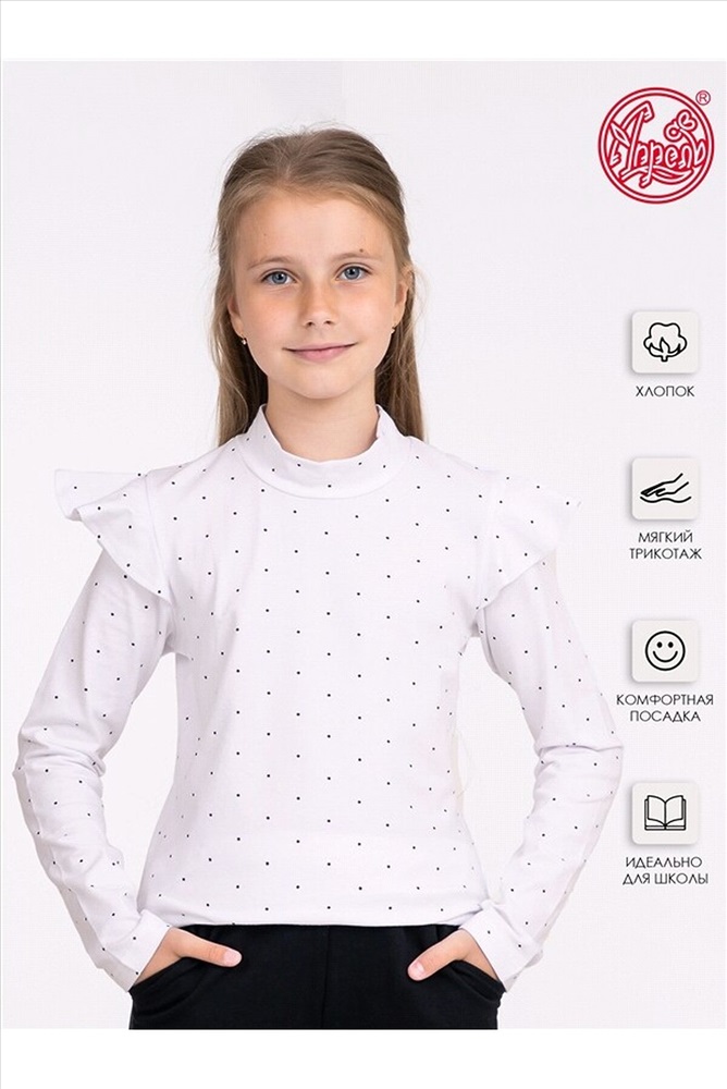 Водолазка для девочки выполнена из легкого хлопкового полотна с лайкрой. Изделие с длинными рукавами украшенными оборкой и воротником-стоечкой. Незаменимый предмет гардероба для юных школьниц! Уход: только машинная стирка (руками не стирать!) при температуре 40 градусов, без предварительного замачивания. Материал: кулир с лайкрой