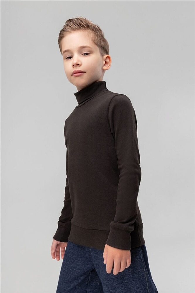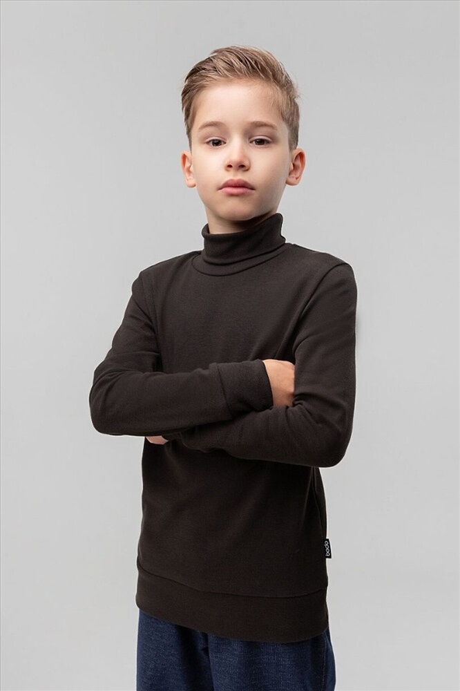Страна производства: Россия Водолазка детская. Детали: полуприлегающий покрой, рукава на манжетах, воротник-стойка. Состав: рибана 92% хлопок 8% лайкра