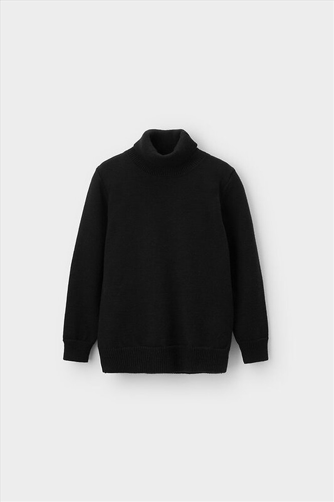 Вязаный джемпер для мальчика из полушерстяной пряжи. Высокий воротник с отворотом хорошо защищает от холода. Длинные рукава с манжетами. Внизу эластичный пояс. Изделие сохраняет форму и стойкий цвет после многочисленных стирок.