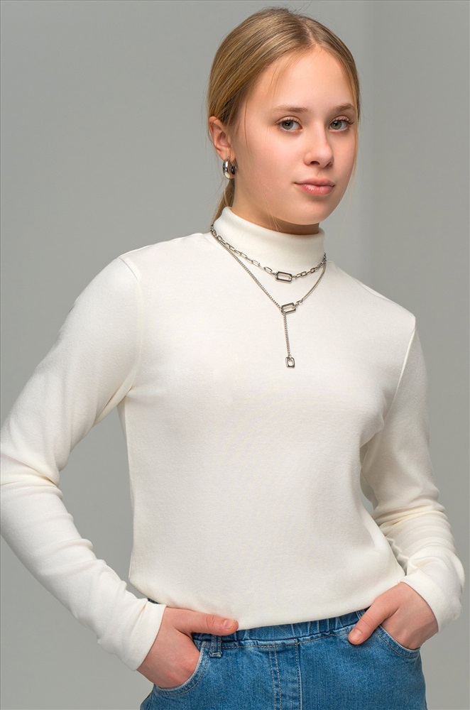 Детская водолазка для девочки и девочки подростка станет любимицей в весенне-осеннем гардеробе. Благодаря нежной текстуре в рубчик модель не только добавит в повседневный образ нотку элегантности, но и обеспечит максимальный комфорт. Базовый лонгслив с воротником-стойкой выполнен из трикотажной ангоры, в ней будет тепло в прохладную погоду. Вискоза мягкая и приятная к телу, добавление полиэстера делает тонкий джемпер более прочным, он не теряет форму даже после многочисленных стирок. Длинные рукава и воротник-стойка прекрасно защищают в прохладные дни, а рубчик добавляет изящности. Однотонная белая водолазка легко сочетается с другими предметами школьного гардероба, что позволяет создавать новые стильные образы. Подростковый лонг с горлом — универсальное решение на каждый день. Бадлон из трикотажа подойдет для школы и для прогулок, станет стильной основой для образов на весну и осень. Модель Даша, ее рост 161, параметры: 81-63-86. На ней размер 164.