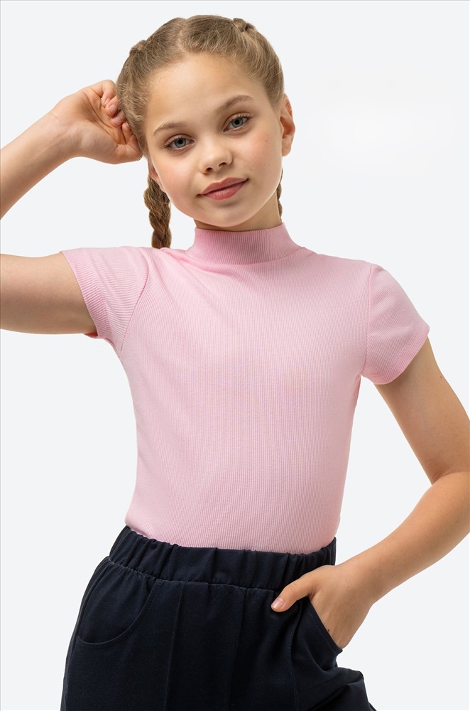 Индивидуальность в рамках школьных правил! Детская водолазка в рубчик из хлопка станет идеальным дополнением к школьной форме для девочек и девочек-подростков. Нежный фактурный рубчик, короткие рукава, аккуратный воротник-стойка и базовый розовый цвет – эта водолазка для детей точно поможет создать красивый и опрятный образ в школу!