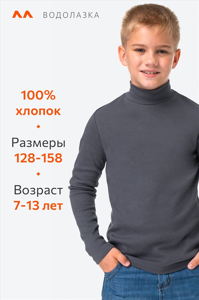 Графитовая водолазка для мальчиков и мальчиков подростков выполнена из 100% хлопка, который дарит запредельную мягкость и приятные прикосновения.