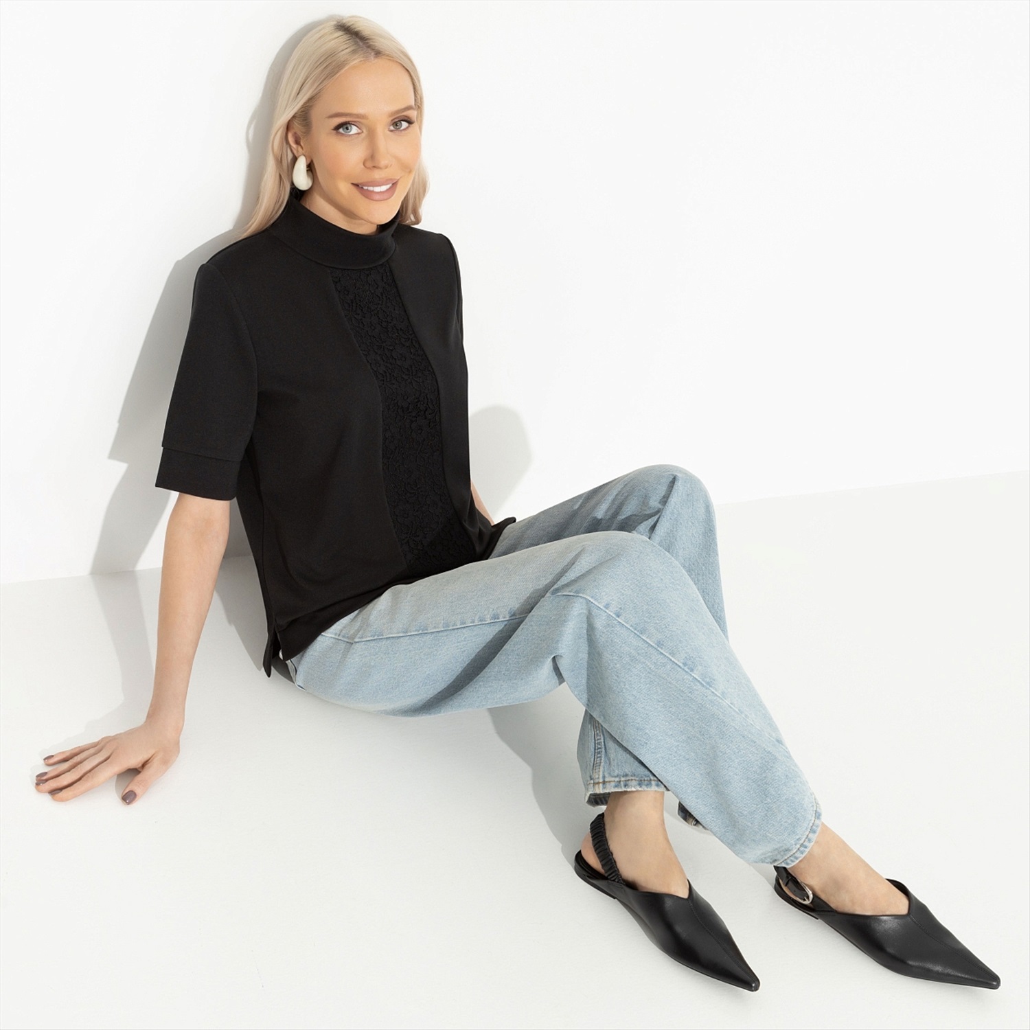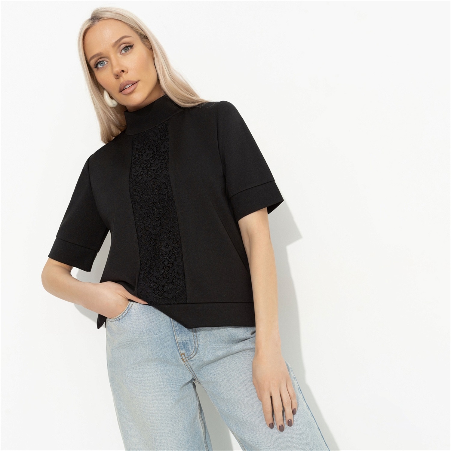 Когда он сказал, что нужно быть менее расточительной, ты встретила его в новой водолазке CHARUTTI. На его удивленный взгляд ты ответила, что водолазка черная. Может пригодиться в любой момент. Водолазка прямого силуэта со вставкой из кружева. Деликатные разрезы по бокам изделия. Комментарии к товару