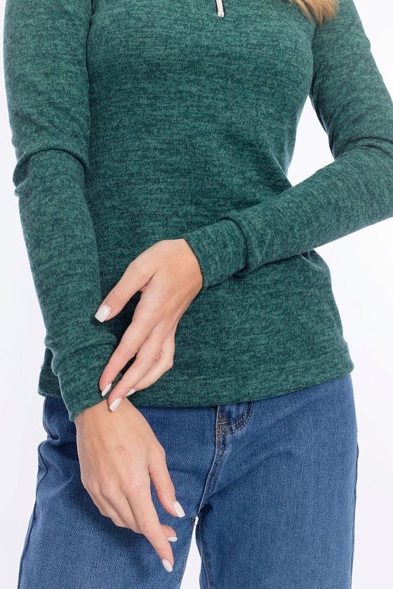 Водолазка из ангорки, с небольшим воротником-стойкой с застёжкой молнию. Рукава втачные длинные, с манжетой.