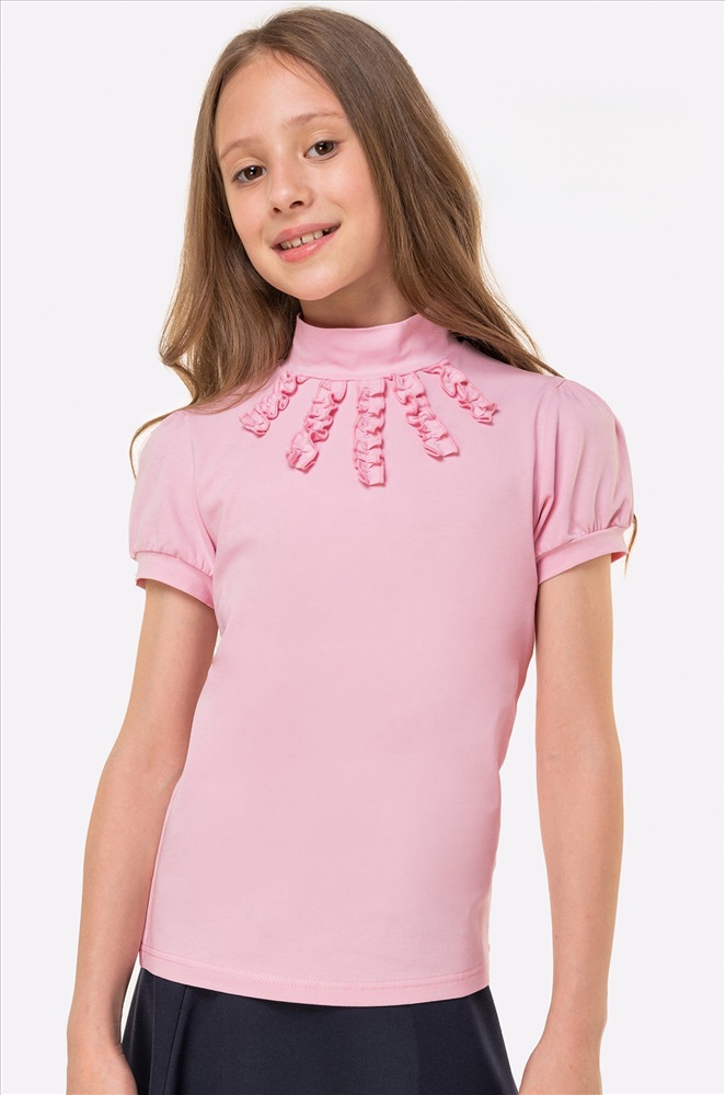 Индивидуальность в рамках школьных правил! Детская водолазка из мягкого и приятного к телу хлопка станет идеальным дополнением к школьной форме для девочки и девочек-подростков. Аккуратные рюши, короткие рукава-фонарики и базовый розовый цвет – важные детали, которые делают блузку для детей красивой и опрятной.