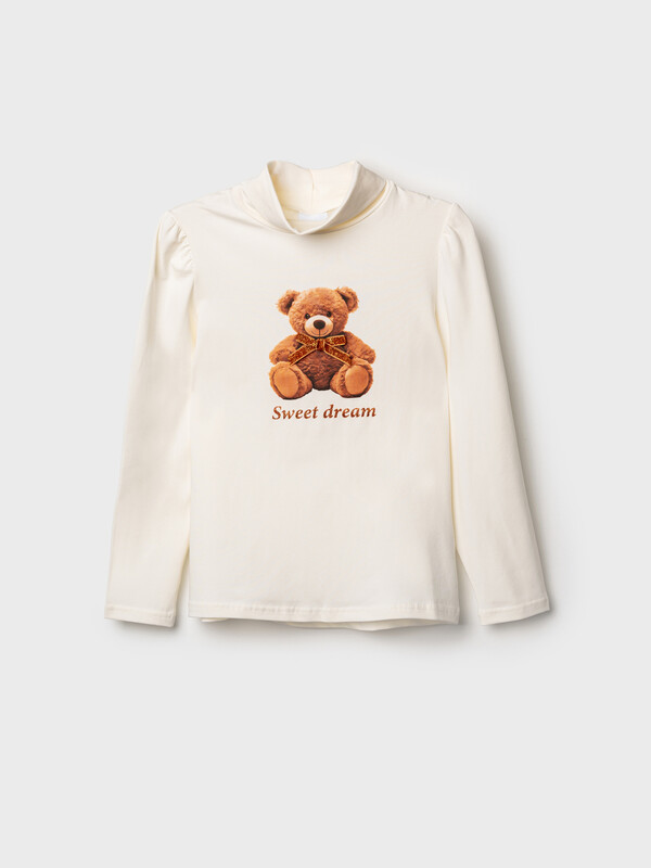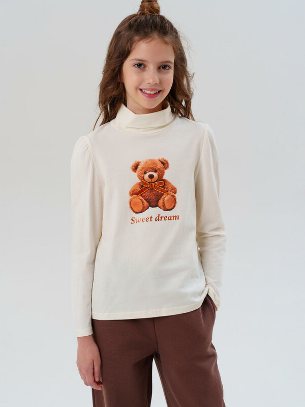 Водолазка с горлом выполнена из мягкого эластичного трикотажа, идеально садится по фигуре и не сковывает движения. Модный принт спереди делает эту водолазку стильным акцентом в образе подростка. Ворот с отворотом защищает от ветра и холода, а дышащая ткань приятна к телу.