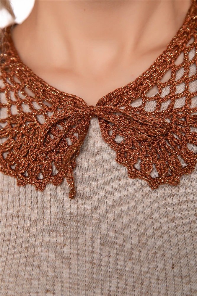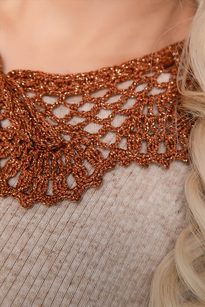 Тип товара: воротничок ажурный. Материал: хлопковая нить с люрексом. Состав: 96% хлопок, 4% металлик. Цвет: корица.
