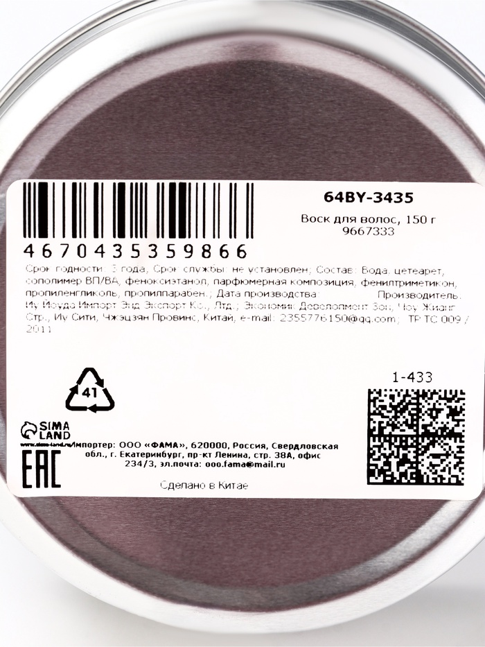 Страна: Китай В боксе: 144 шт Состав: См. на упаковке Материалы: см. на упаковке Фасовка: по 1 шт Индивидуальная упаковка: Картонная коробка Сертификат: ЕАС Объём, мл: 150 Фиксация: Лёгкая Фиксированная цена: Да Гелевый воск для волос объединяет в себе преимущества геля и воска, предоставляя вам уникальные возможности для стайлинга волос. Его легкая текстура обеспечивает удобное распределение и легкость в использовании. Этот гелевый воск обеспечивает стойкую фиксацию и контроль за волосами, придавая им желаемую форму. Благодаря гелевой основе, воск также придает волосам естественный блеск, не делая их тяжелыми или жесткими. Прекрасно подходит для создания различных укладок, акцентирования текстуры волос или укладки локонов. Легко смывается при помощи шампуня, что делает процесс ухода за волосами максимально удобным. Комментарии к товару