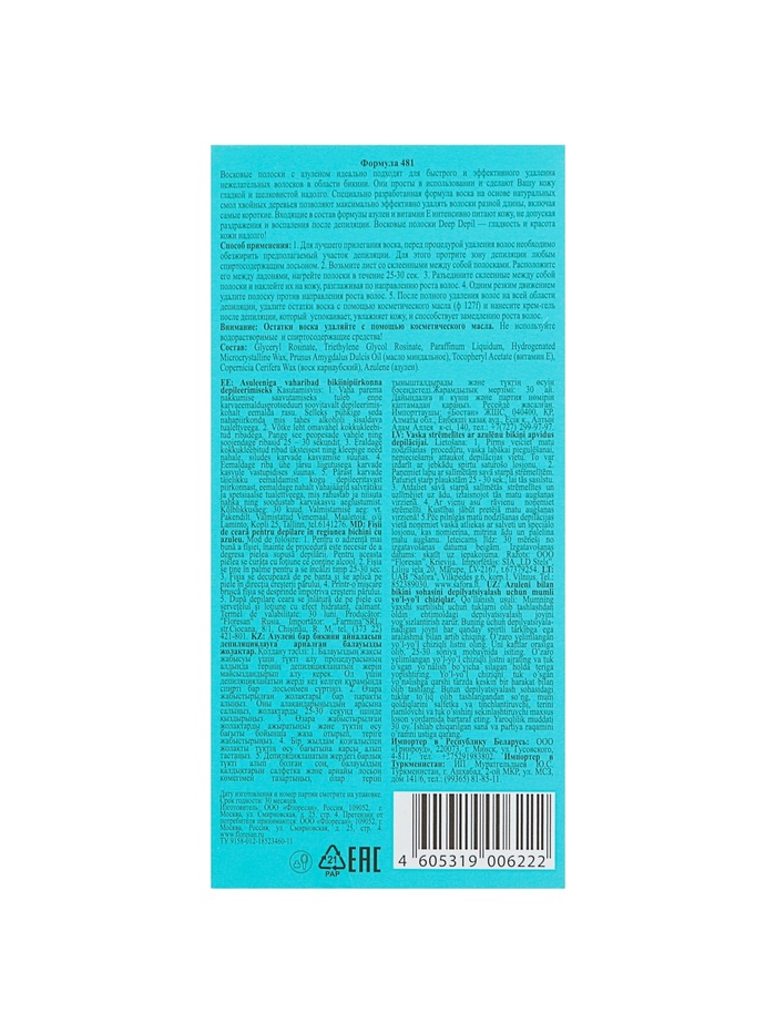 Габариты: 7 x 2 x 15,5 Страна: Россия В боксе: 20 набор Состав: См. на упаковке Материалы: см. на упаковке Фасовка: по 1 набор Индивидуальная упаковка: Без упаковки Габариты товара: 7 см × 2 см × 15 см Сертификат: ЕАС В упаковке, шт.: 20 Темпер. ограничение НЕ НИЖЕ ℃: 0 Восковые полоски с азуленом идеально подходят для быстрого и эффективного удаления нежелательных волосков в области бикини. Они просты в использовании и сделают Вашу кожу гладкой и шелковистой надолго. Благодаря воску Стрейч-эластик, который идеально повторяет форму тела и учитывает все детали рельефа кожи, стало возможным удалять волосы разной длины, включая самые короткие. Специальная ткань лишена эластичности, что дает возможность делать короткое резкое движение при отрыве полоски, предотвращая болезненные ощущения. Входящий в состав воска азулен препятствует сухости и шелушению кожи после депиляции. Комментарии к товару