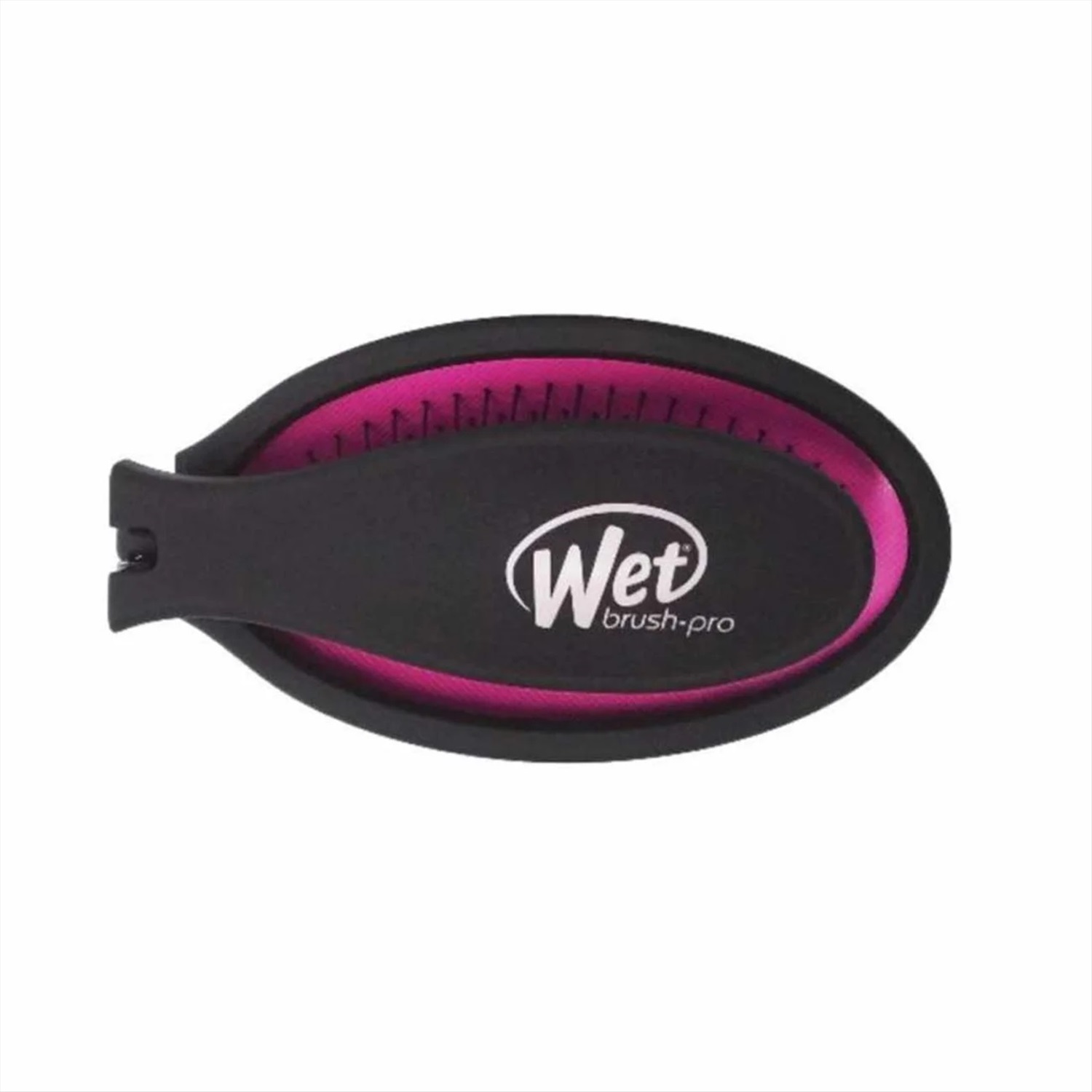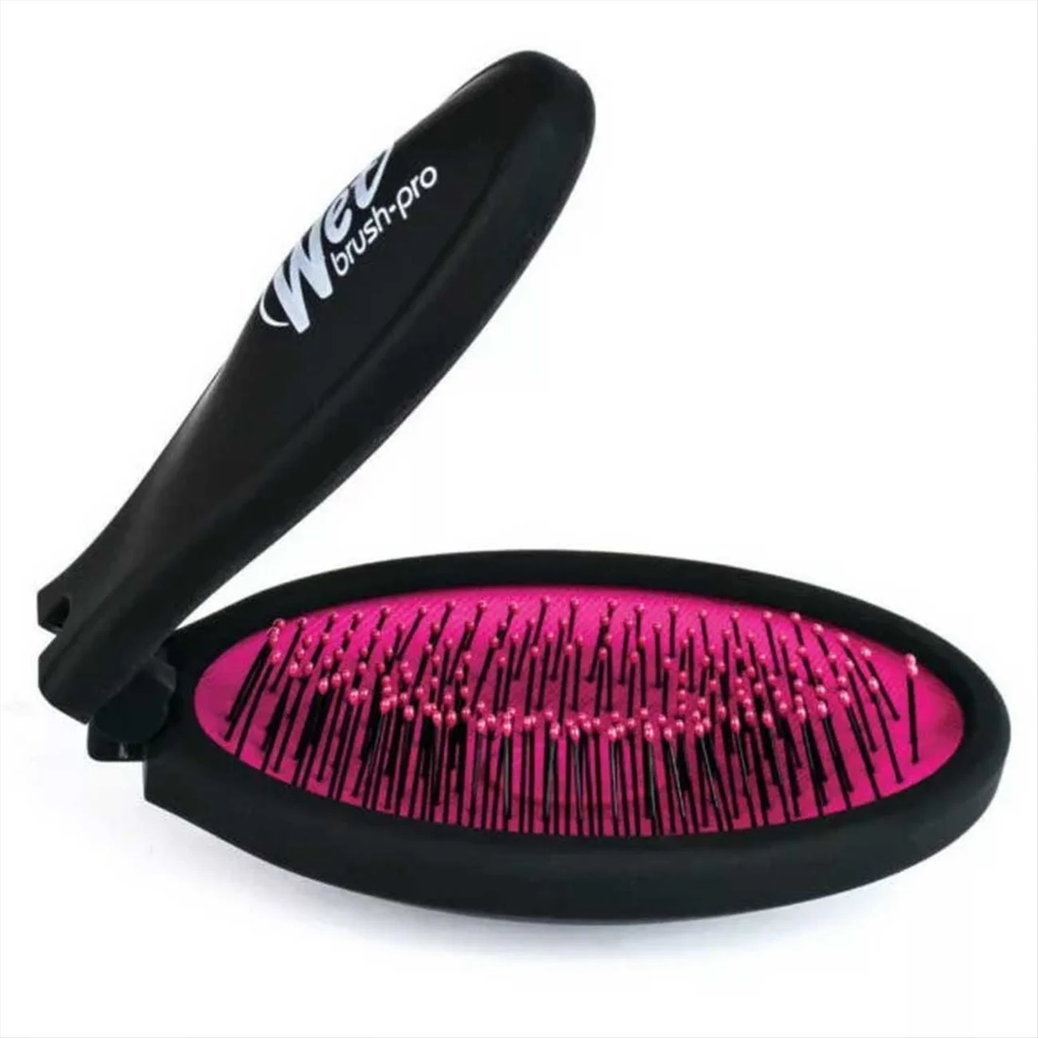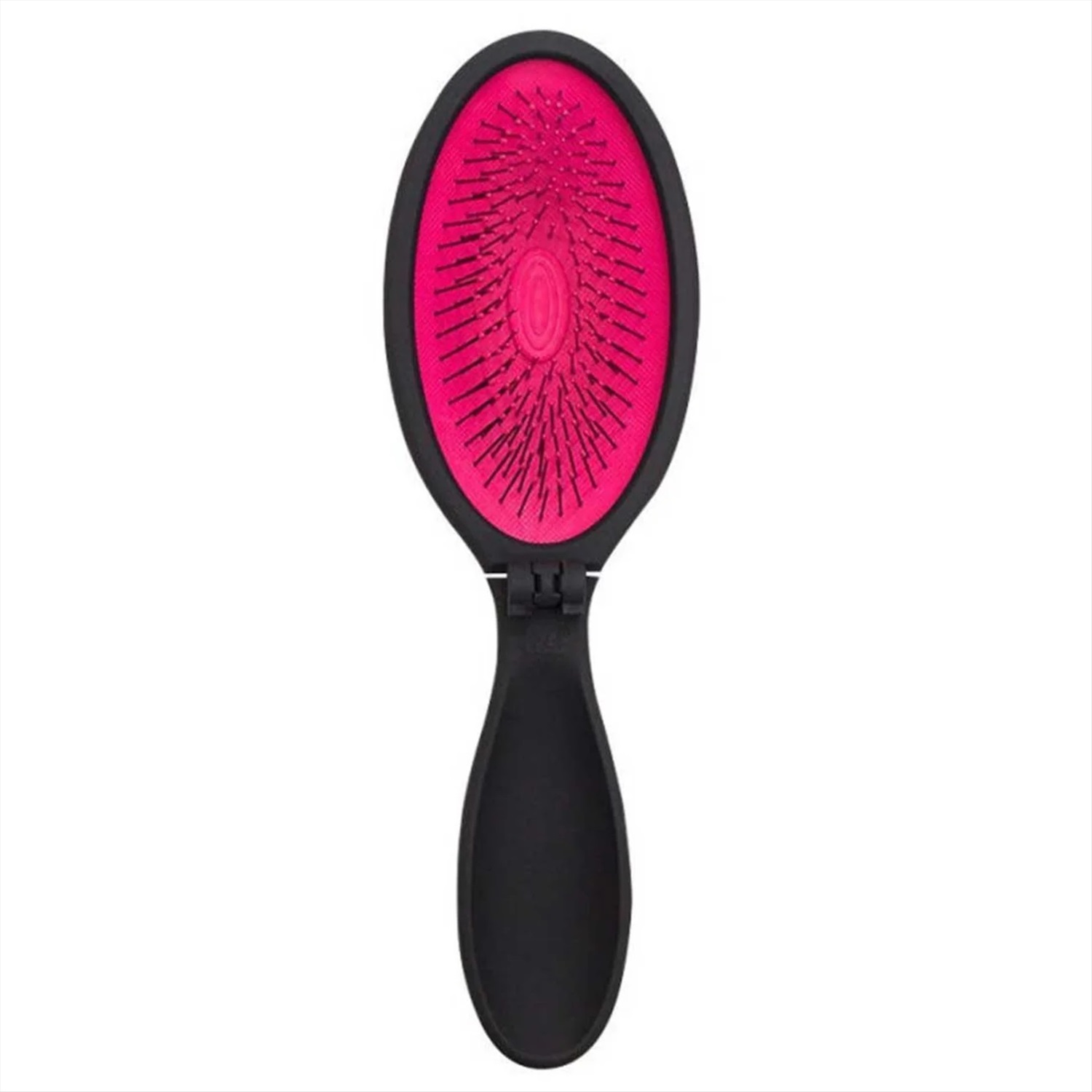 Складная щётка Wet Brush в стильной чёрно-розовой расцветке создана для мгновенного и деликатного распутывания волос. Гибкие щетинки IntelliFlex™ повторяют изгиб волоса и мягко проходят через узелки, не повреждая структуру и не раздражая кожу головы. Кончики SofTips обеспечивают массажное воздействие, стимулируют кровообращение у корней, что способствует укреплению волос. Расчёска компактно складывается, поэтому идеально подходит для сумочки, путешествий и ежедневного использования.