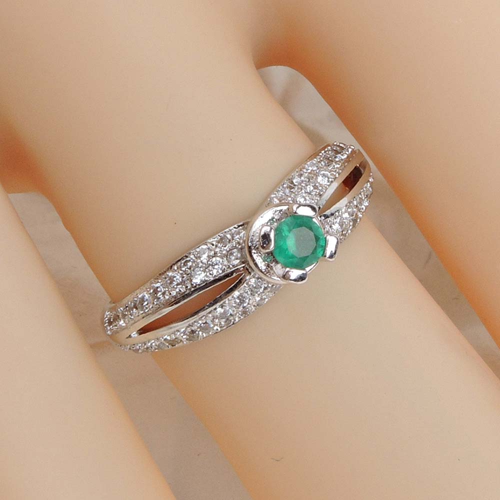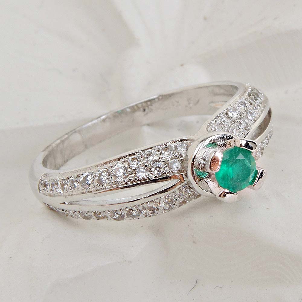 Кольцо с родиевым покрытием с цирконами (фианитами)