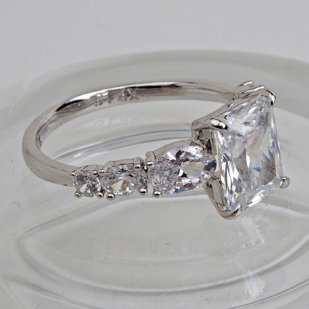 Кольцо с родиевым покрытием с цирконами (фианитами)
