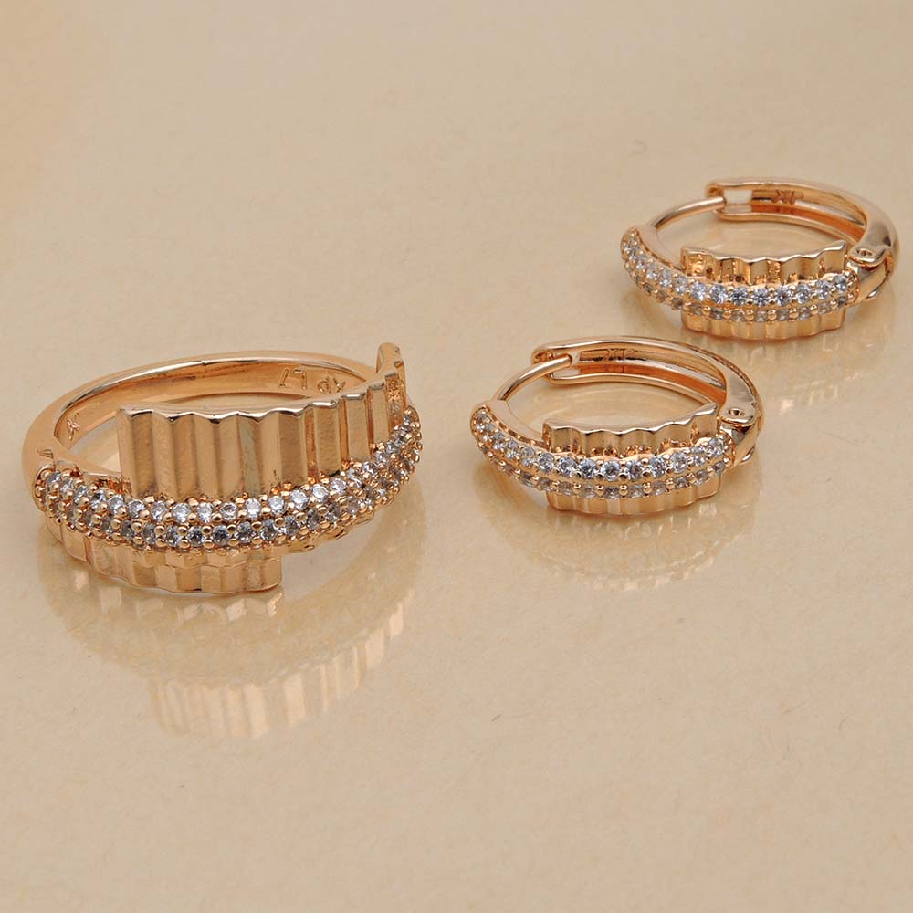 Кольцо/Серьги с замком кольцо с золотым покрытием 18K 1 мкр с цирконами (фианитами)