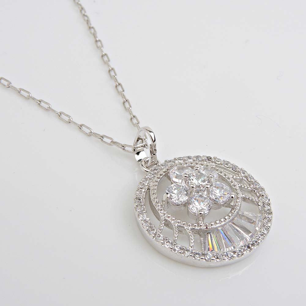 Размер: дл 40см кулон(вставки-цирконы,белые,покрытие-родирование)
