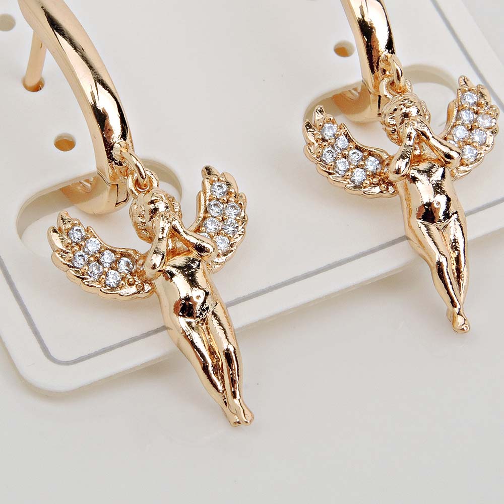 Серьги с английским замком с золотым покрытием 18K 1 мкр с цирконами (фианитами)