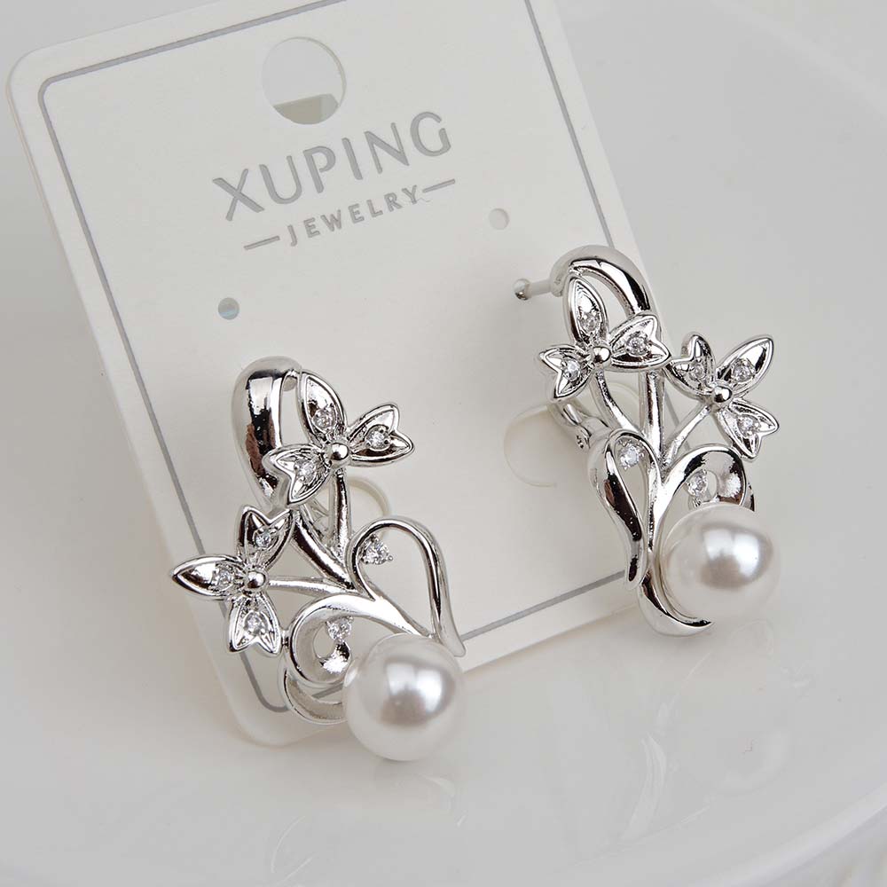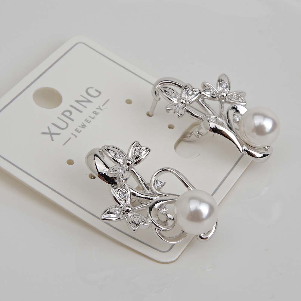 Замок: Английский Бренд: Xuping jewelry Металл: Родиевое покрытие Материал: Ювелирный сплав Вставка: Жемчуг майорка, Циркон Производство: Китай Количество: пара Серьги с английским замком с родиевым покрытием с цирконами (фианитами)
