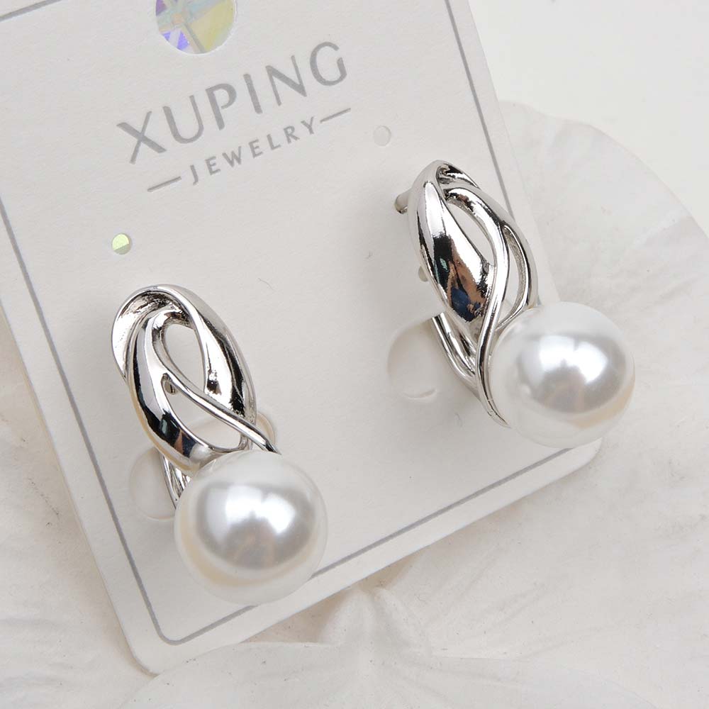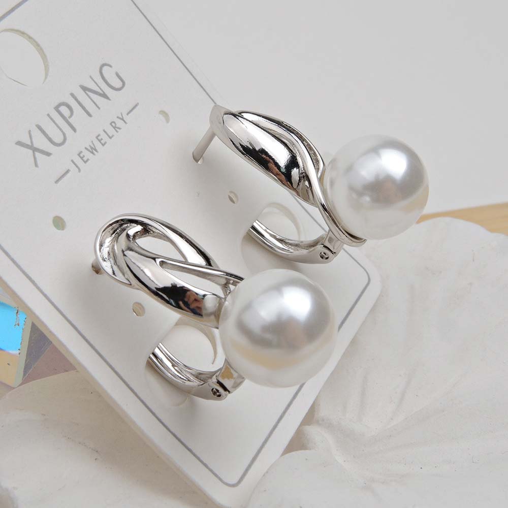 Серьги с английским замком с родиевым покрытием с искусственным жемчугом Майорка (покрытие натуральный перла