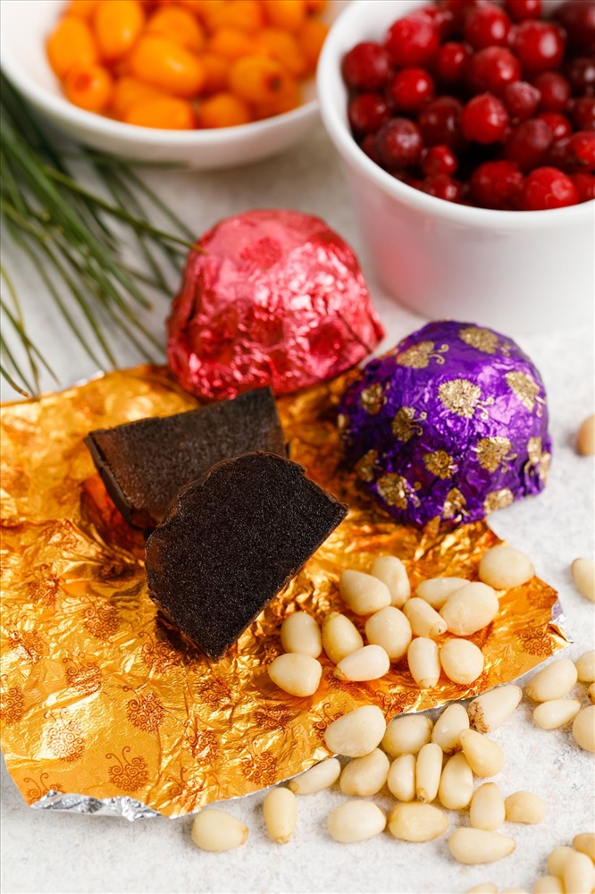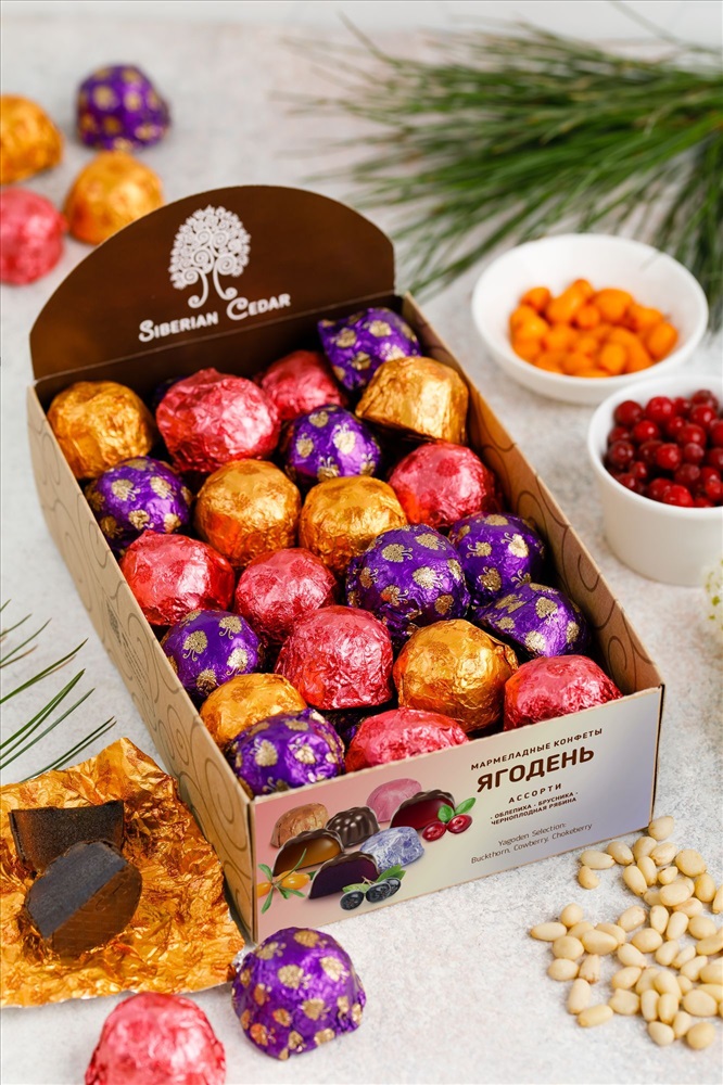 Погрузитесь в мир восхитительных вкусов с конфетами "Ягодень ассорти" от ТМ Сибирский кедр. Эти яркие и очень вкусные сладости, основанные на соках сибирских ягод, таких как облепиха, брусника и черноплодка, подарят вам неповторимый вкус и заряд бодрости. Конфеты приготовлены по уникальной рецептуре, разработанной нашими опытными кондитерами, что позволяет сохранить все полезные свойства ягод.