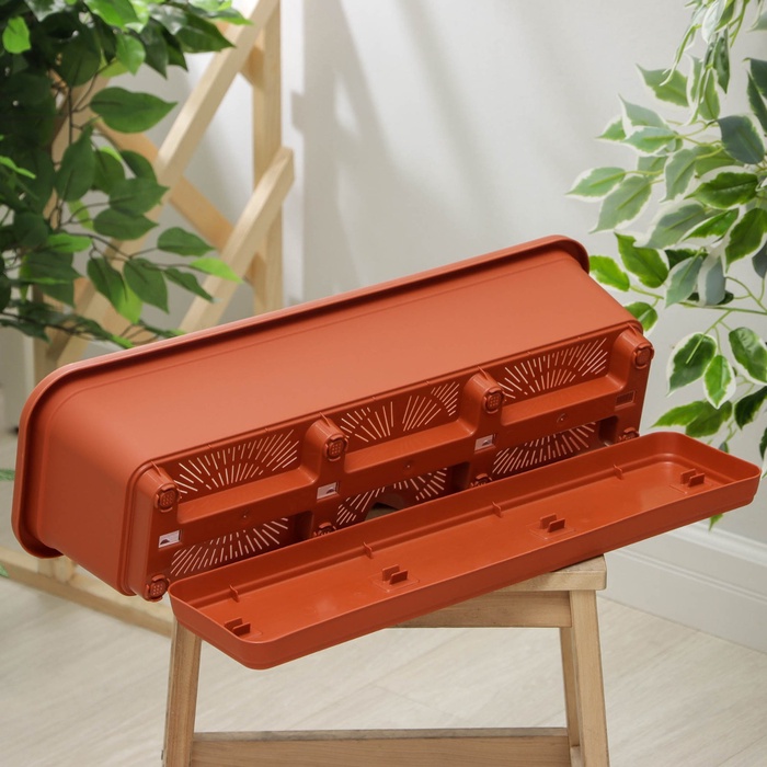 Балконный цветочный ящик с поддоном, 60 см, терракотового цвета — это прекрасное решение для озеленения небольших городских пространств. Его лаконичный дизайн и продуманная конструкция сделают ваш балкон не только стильным, но и функциональным.