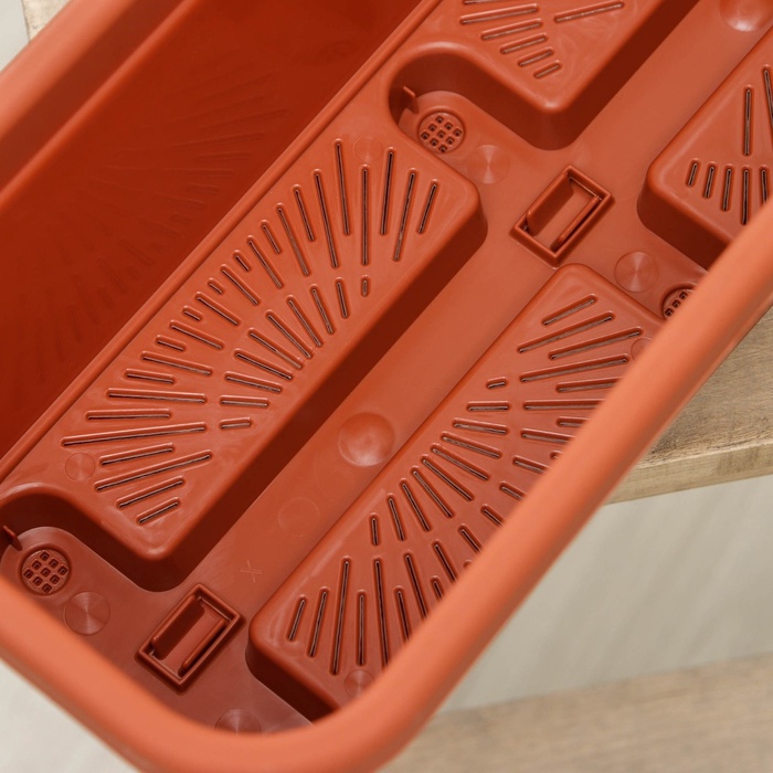 - Умная дренажная система: ящик оборудован дренажными отверстиями и съёмным поддоном, что предотвращает переувлажнение почвы. Вода после полива останется в поддоне, не загрязняя балкон. Это поддерживает здоровье растений и защищает ваш пол.
