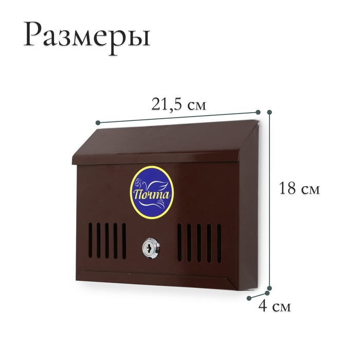 Цвет: Коричневый Страна: Россия В боксе: 10 шт Состав: Металл Материалы: металл Фасовка: по 1 шт Индивидуальная упаковка: Стрейч-пленка Сертификат: Не подлежит сертификации Количество секций: 1 Положение: Горизонтальное Материал: Металл Тип замка: Замок Используйте почтовый ящик для получения корреспонденции, счетов, журналов в загородном доме или на даче. Он компактный, вместительный и прослужит вам долгие годы.