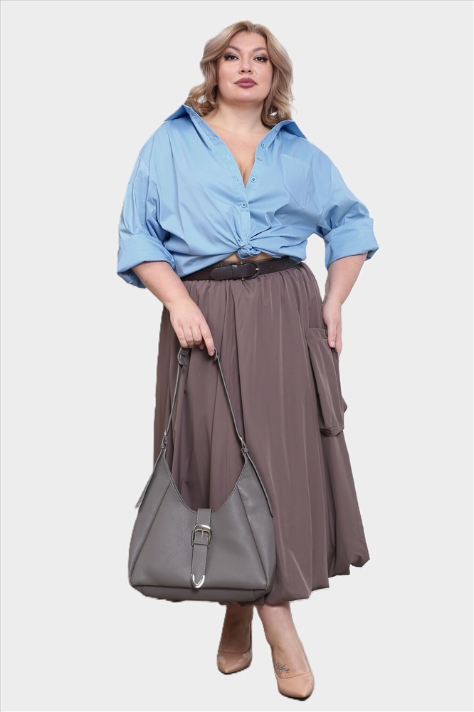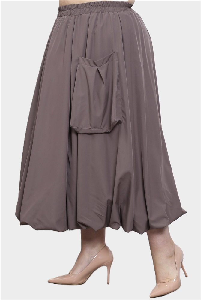 Юбка с нашивным карманом сбоку коричневая