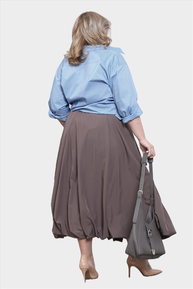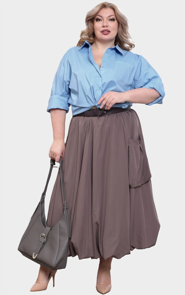 Стильная юбка - баллон из мягкого материала подчеркнет достоинства женской фигуры. Широкая притачная резинка по поясу способствует оптимальной посадке по фигуре. Расклешенные клинья модели искусно обыгрывают бедра и добавляют образу женственности и романтизма. Объемный навесной карман добавляет практичности. Подогнутый низ юбки добавляет модели пышности и оригинальности. Носить юбку такого плана можно с любимыми футболками, обтягивающими водолазками, блузами и рубашками.