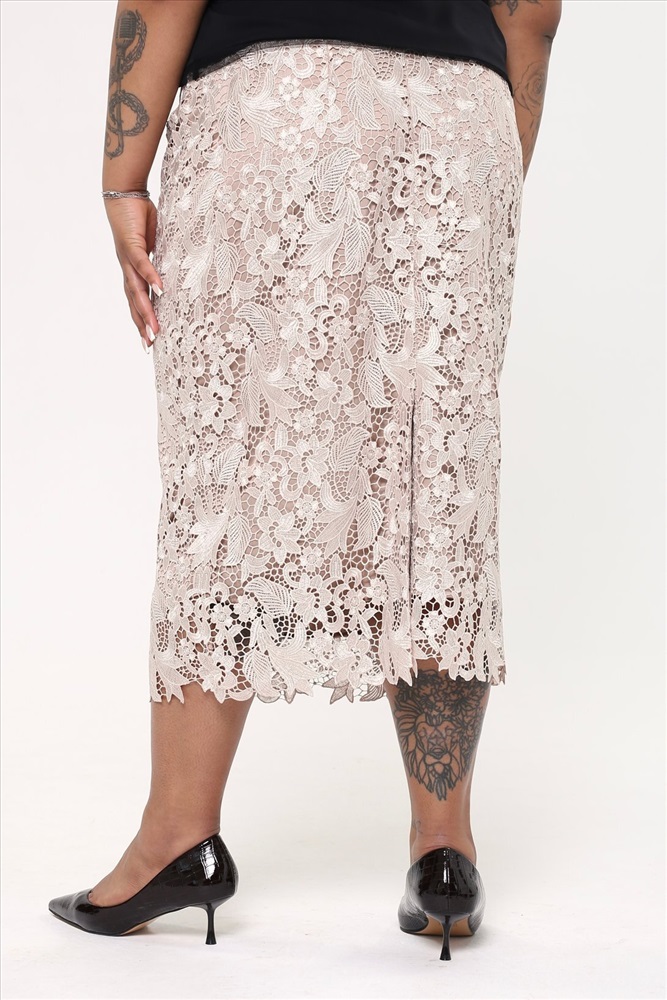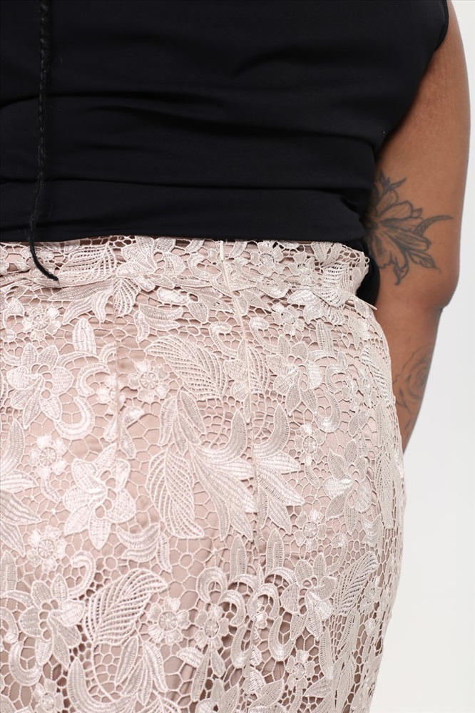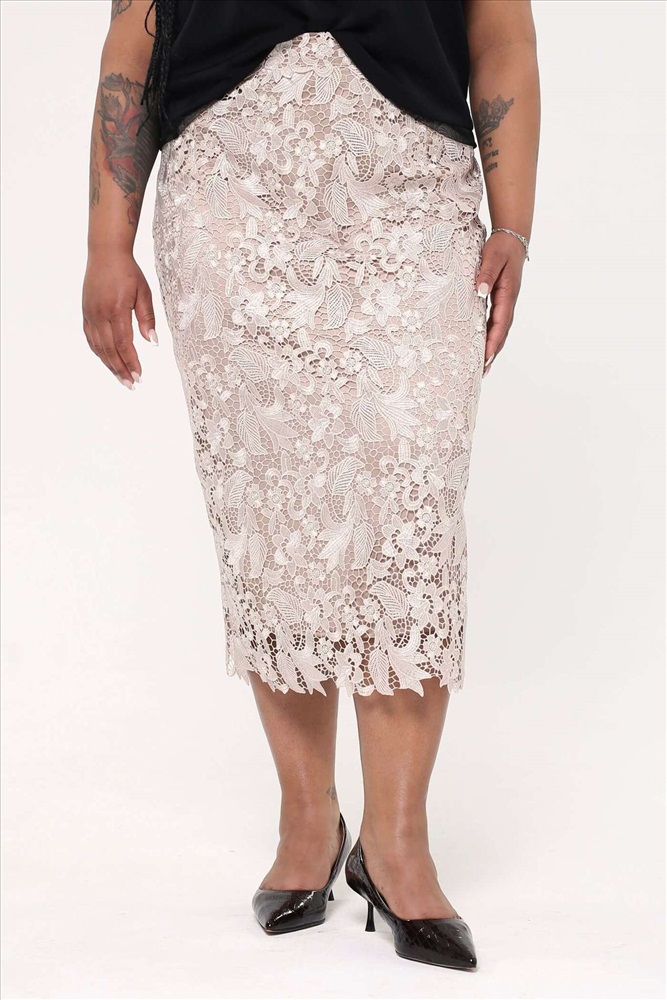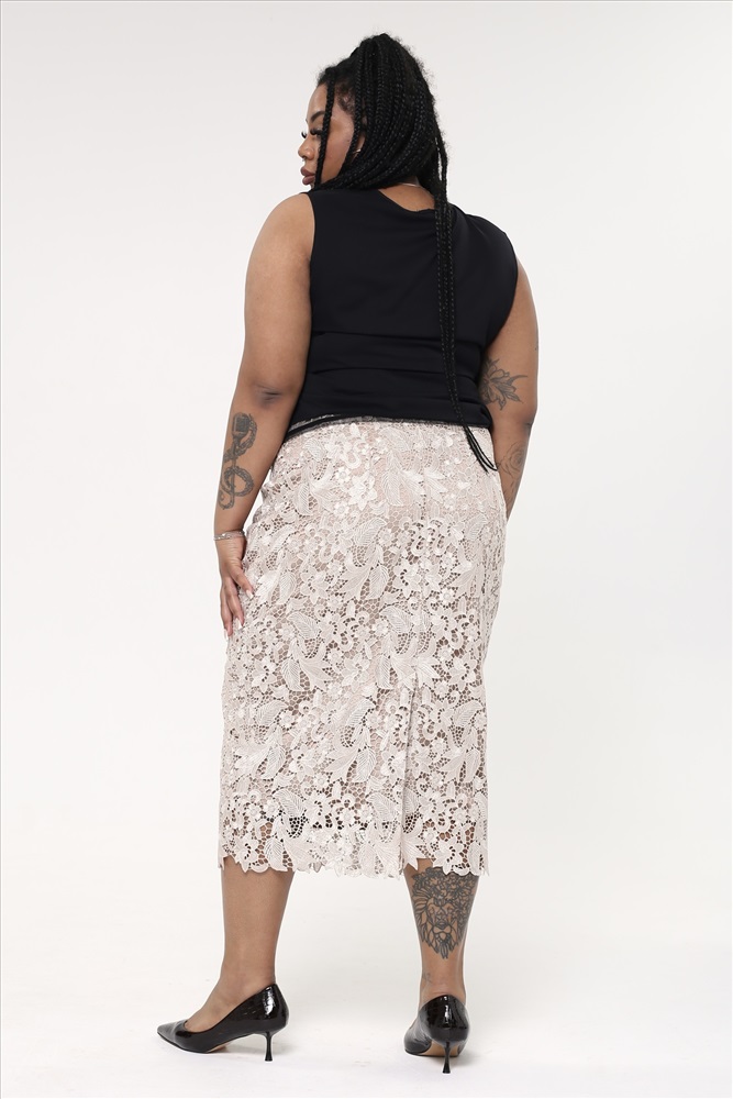 Элегантная юбка-карандаш из эластичного кружевного полотна на мягкой подкладке. Модель с комфортной посадкой, не сковывает движений и отлично сидит за счет притачного пояса. Центральный шов по спинке переходит в кокетливую шлицу. Юбка застегивается на потайную молнию. Всесезонная, практичная, универсальная модель юбки отлично структурирует и собирает фигуру в проблемных местах за счет плотности ткани и конструктивных швов. Являясь базовой моделью, удачно сочетается с обувью и одеждой разных стилистических направлений, прекрасно вписываясь как в классический, так и альтернативный гардеробы, создавая актуальные вариативные образы на все случаи жизни.