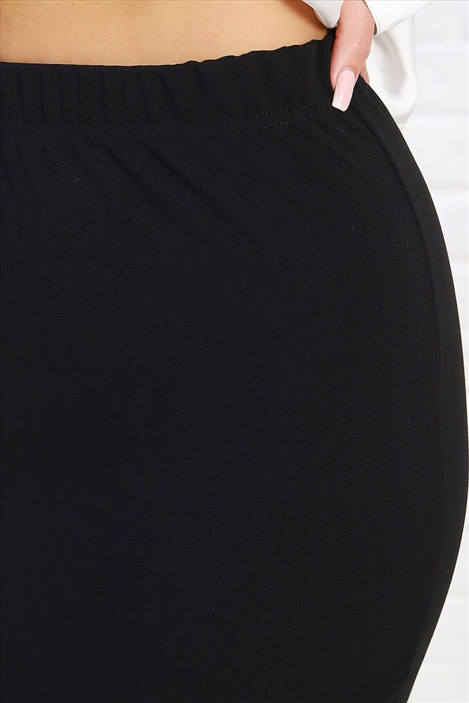 Модель прилегающего прямого силуэта, длиной чуть ниже колена, пояс на резинке. Юбка изготовлена из трикотажной ткани креп, которая приятна к телу, не мнётся, не даёт усадку. В замерах указан обхват бедер без растяжки, ткань тянется хорошо.