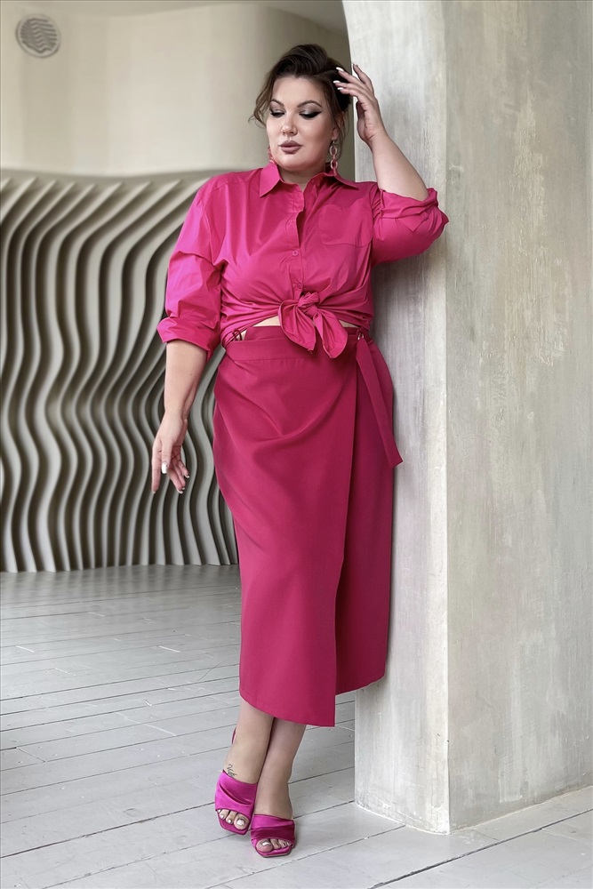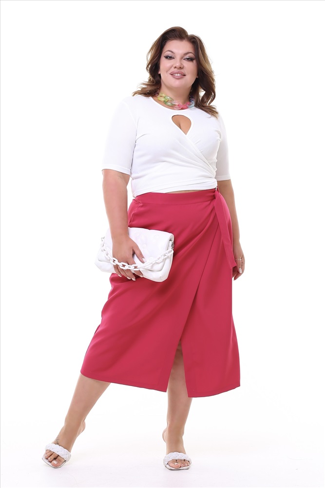 Стильная юбка из мягкой плотной ткани без подкладки подчеркнет достоинства женской фигуры. Юбка на запАх сбоку завязывается на потайные завязки. Вытачки по спинке способствуют оптимальной посадке по фигуре. С помощью притачного пояса и металлической пряжки сбоку можно регулировать талию. Носить юбку такого плана можно с любимыми свитерами, обтягивающими водолазками, блузами и рубашками. Яркий клатч и туфли на каблуках станут идеальным дополнением к стильному образу.